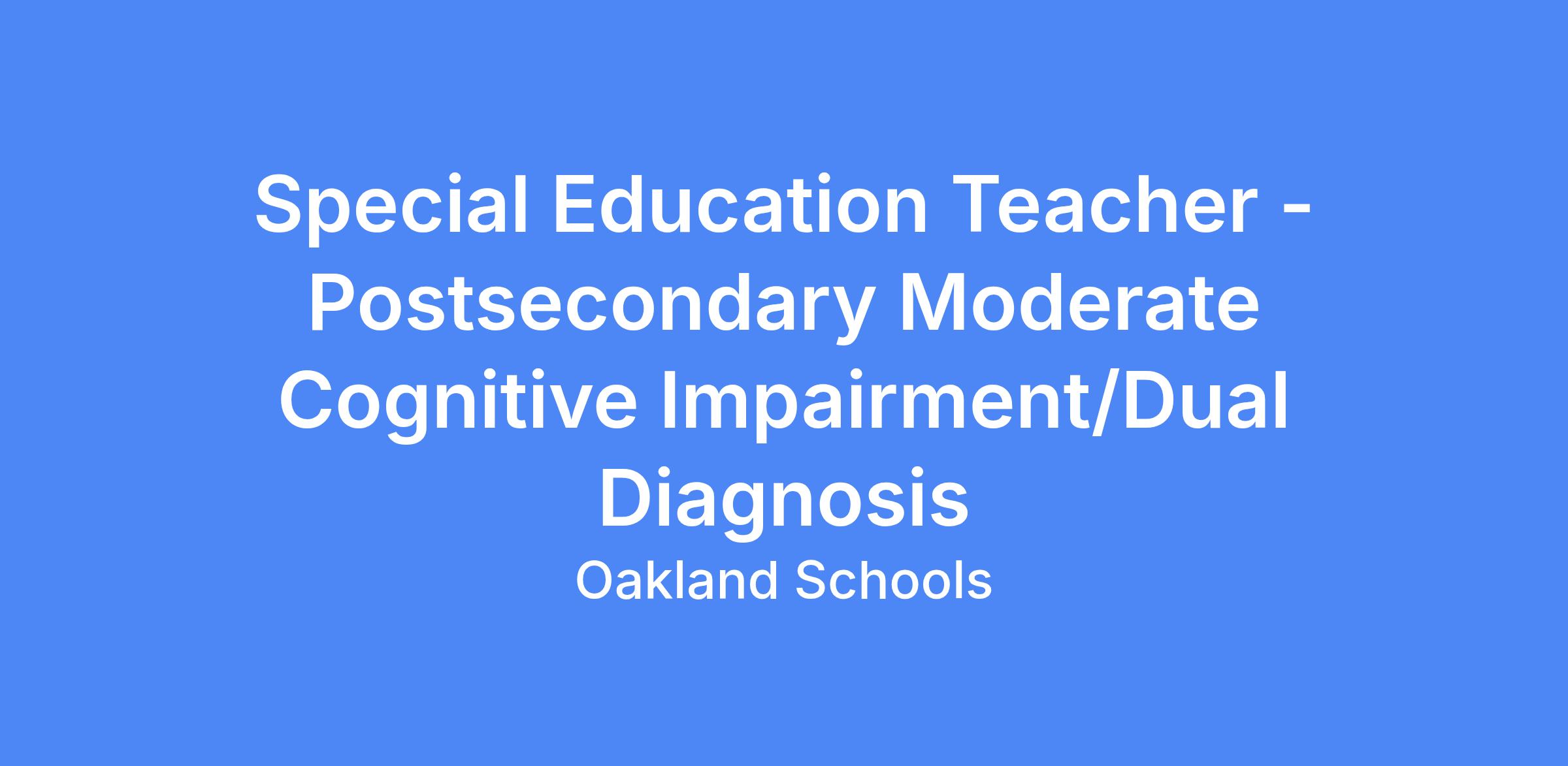 Description: Postsecondary Special Education Teacher for Moderate Cognitive Impairment/Dual Diagnosis