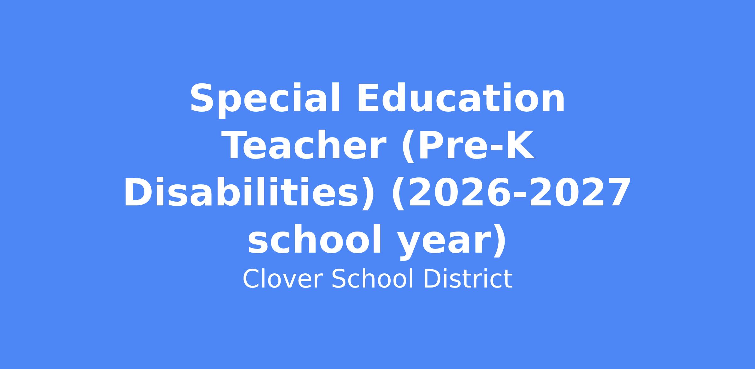 SPECIAL EDUCATION TEACHER - Pre-K Disabilities