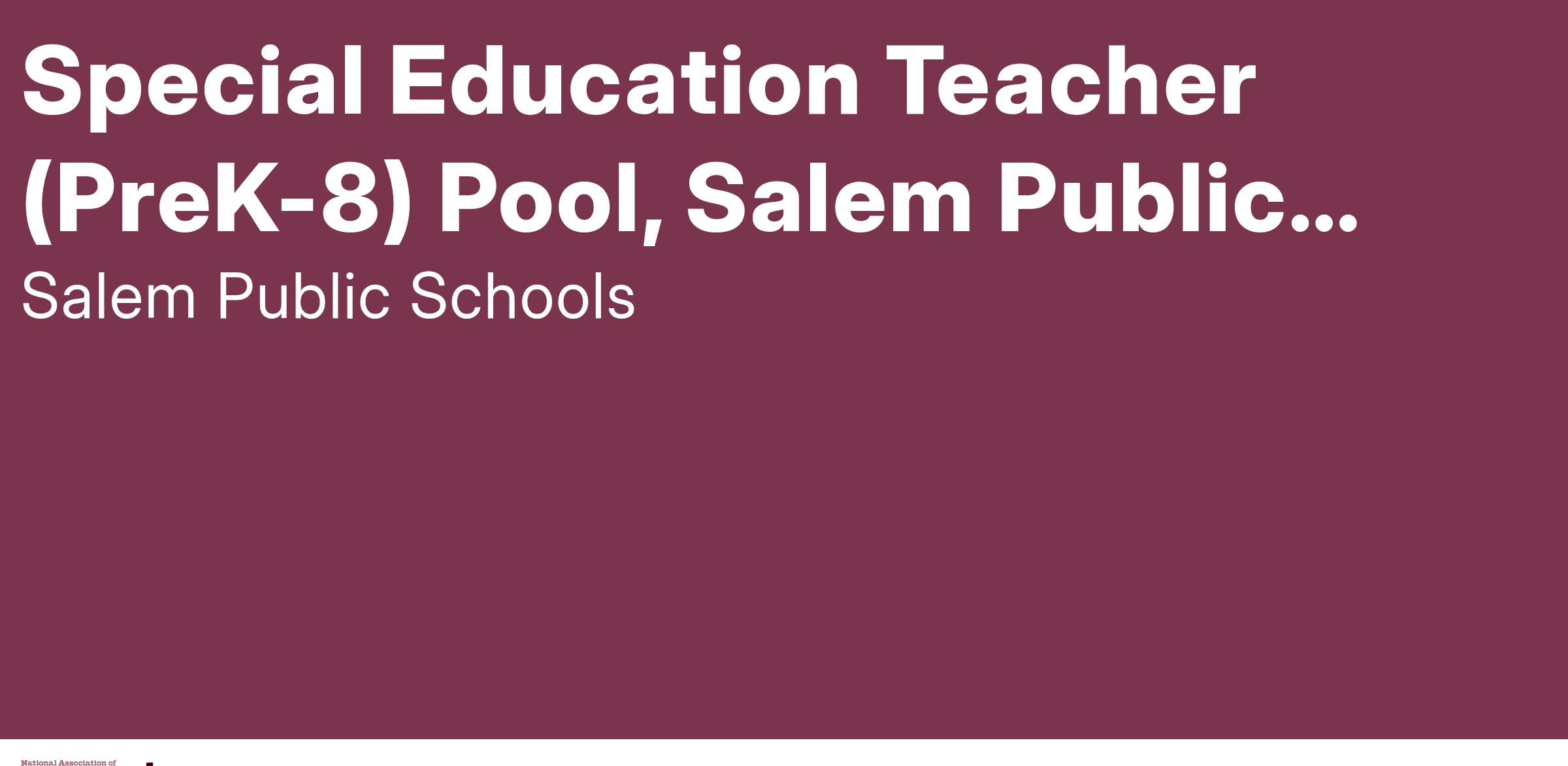 Special Education Teacher (PreK-8) Pool, Salem Public Schools, Salem MA [SY 2025-2026]
