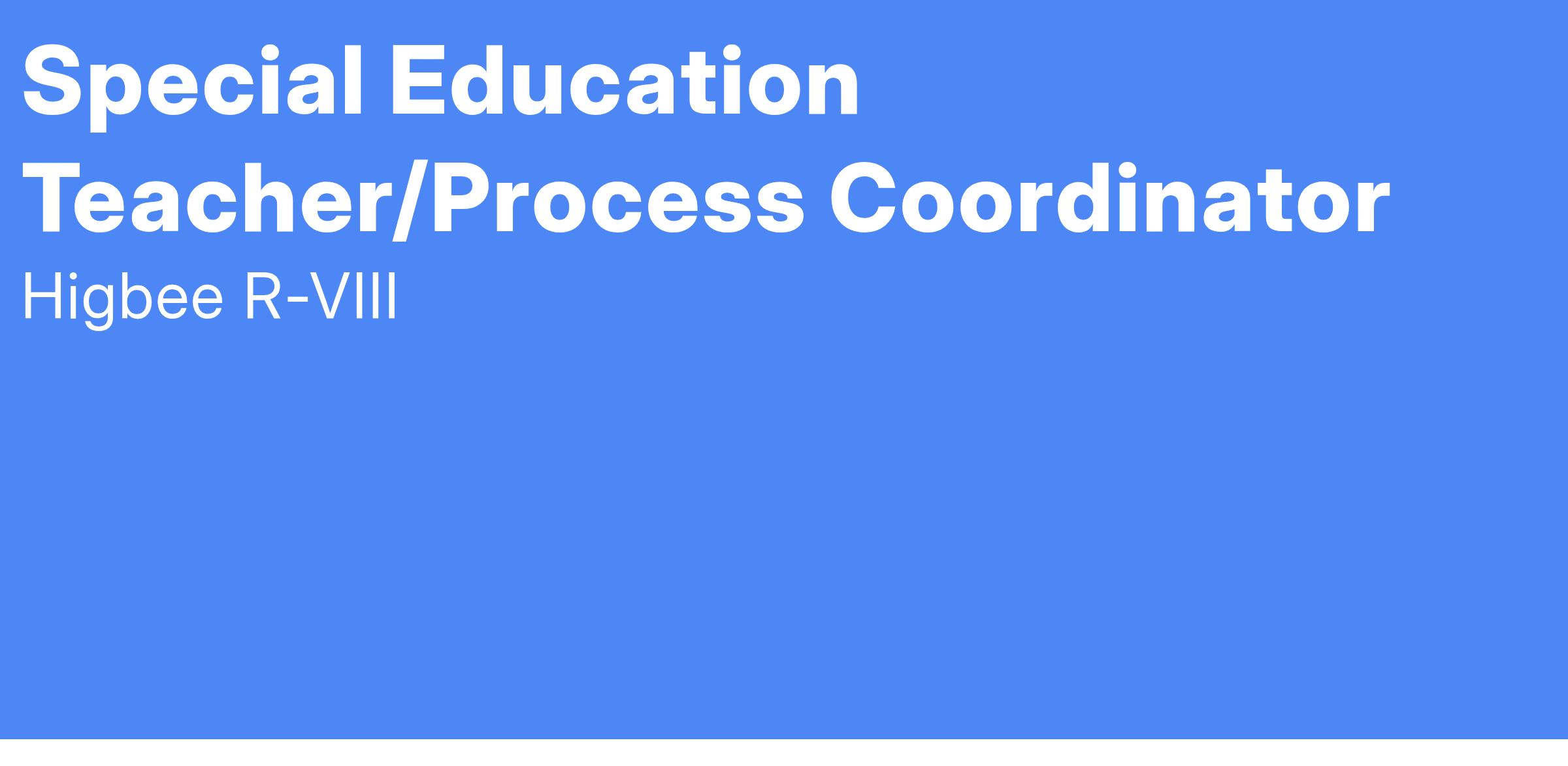 The Higbee R-VIII School District is searching for a highly organized, enthusiastic team player for a special education teacher for the 2025-2026 school year. This position has flexibility and could help students from B-3, elementary, junior high and/or high school students based on the applicants experience.