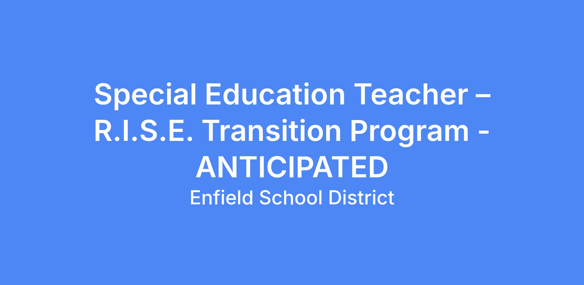 Job Title: Special Education Teacher – R.I.S.E. Transition Program ANTICIPATED