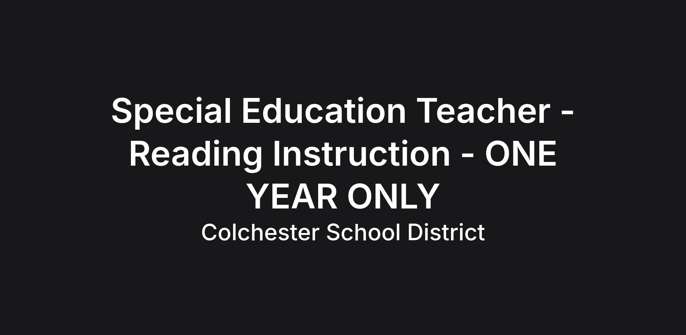 POSITION TITLE: Special Education Teacher (Reading Instruction) - ONE YEAR ONLY