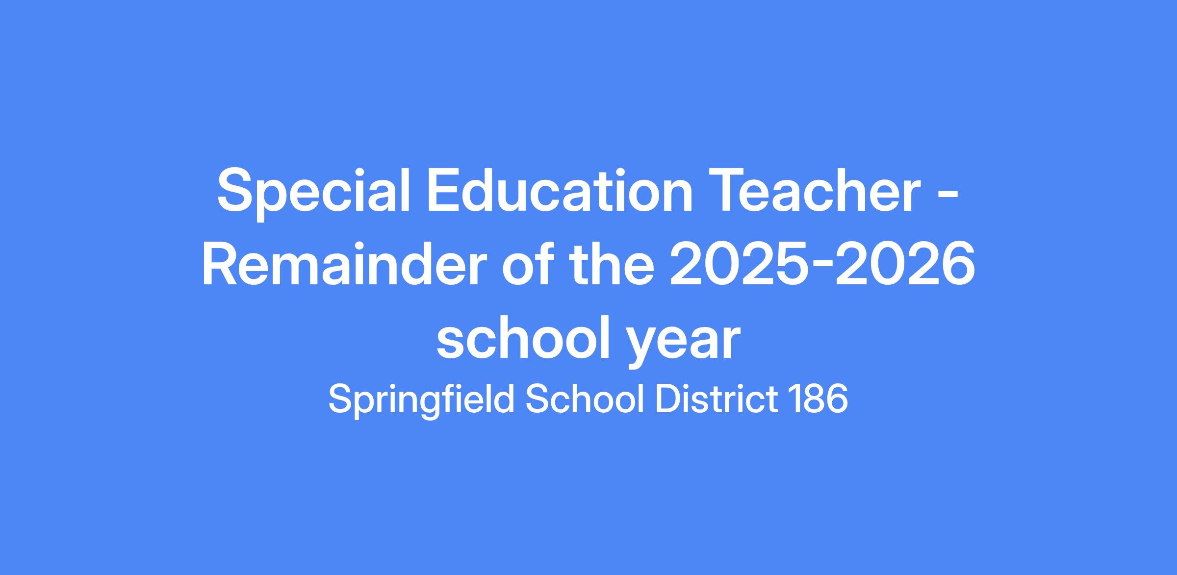 TITLE OF VACANCY: Special Education Teacher