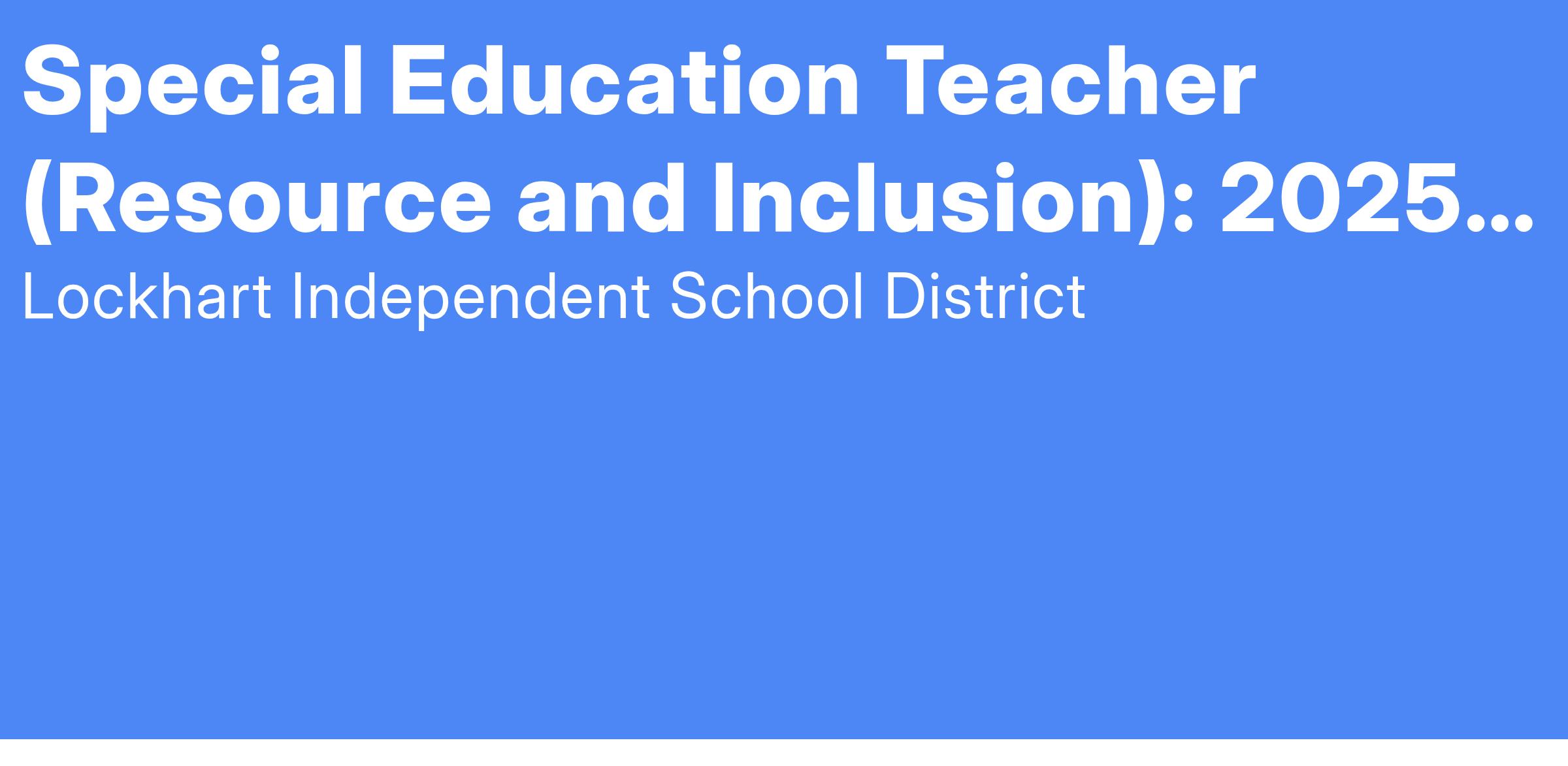 Special Education Teacher (Resource and Inclusion): 2025-2026 School Year