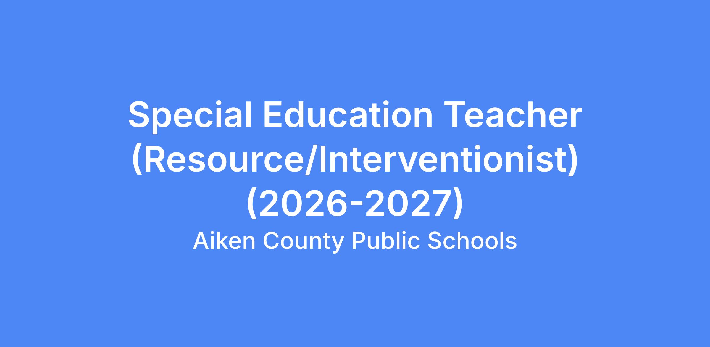 Special Education Teacher (Resource/Interventionist) (2026-2027)
