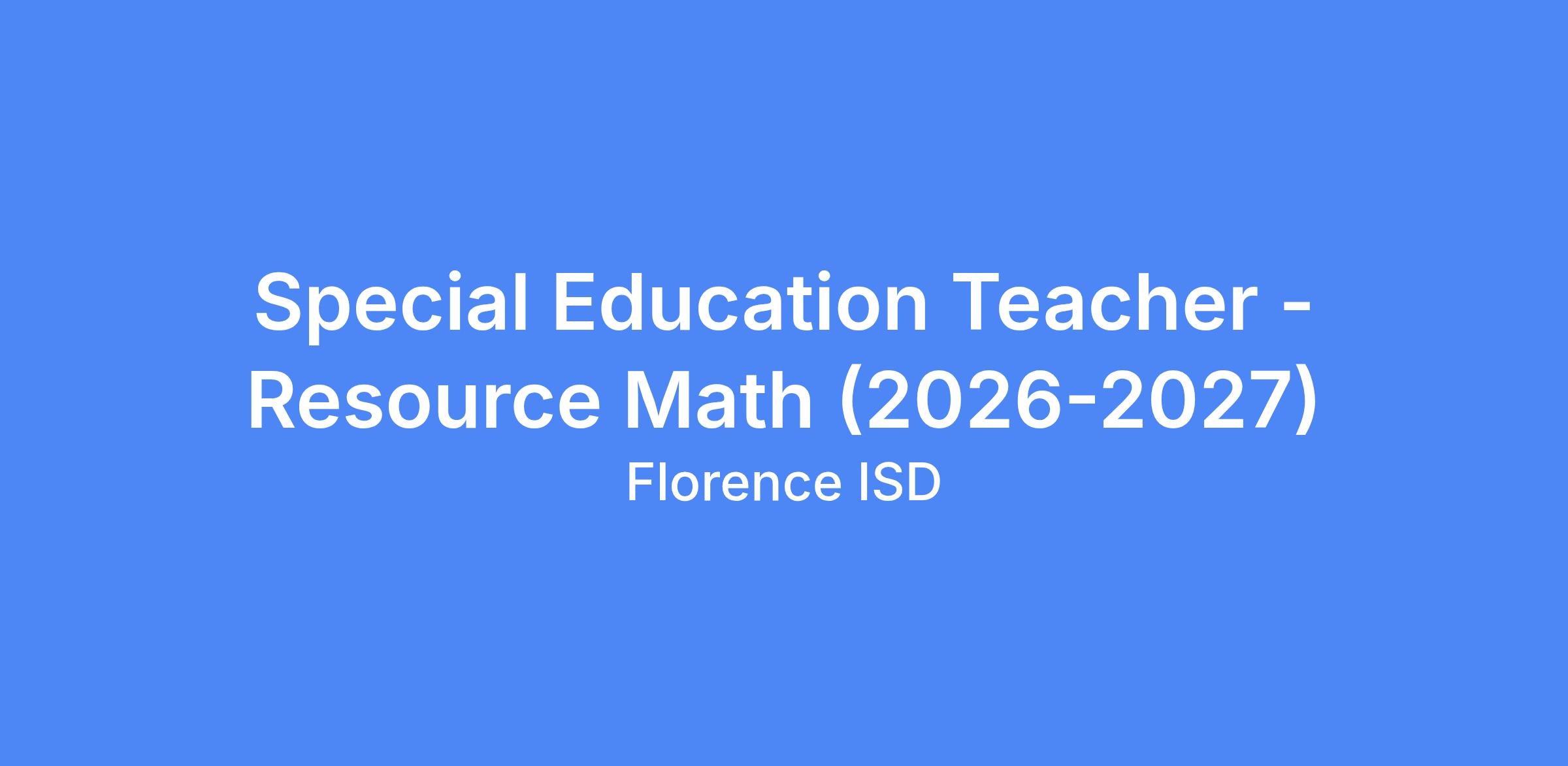 Job Title: Special Education Teacher - Resource Math