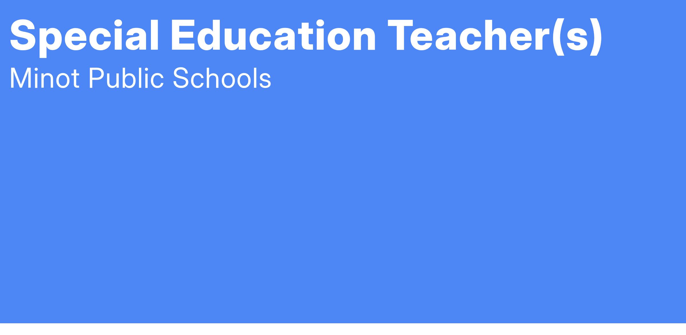 Special Education Teacher positions available which will begin the 2025-2026 school year: