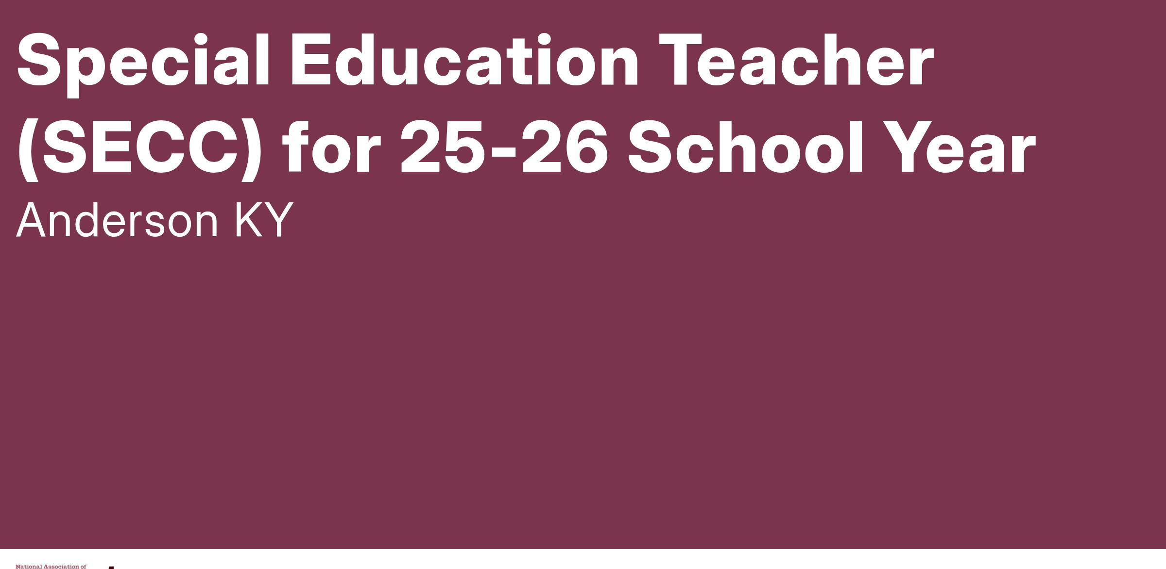 Special Education Teacher (SECC) for 25-26 School Year