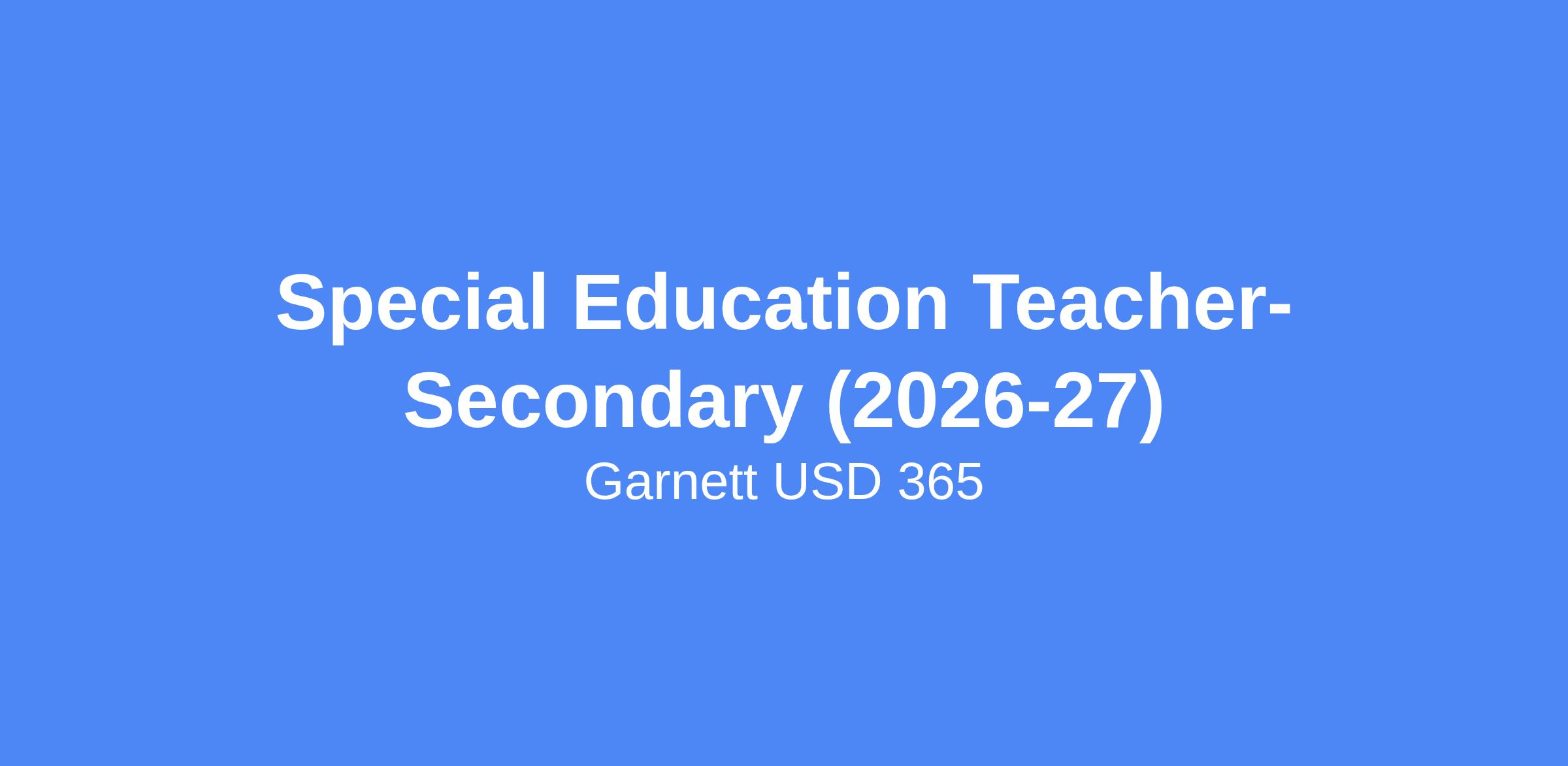 USD #365 is seeking Special Education Teachers to fill anticipated openings at the secondary during the 2026-27 school year.
