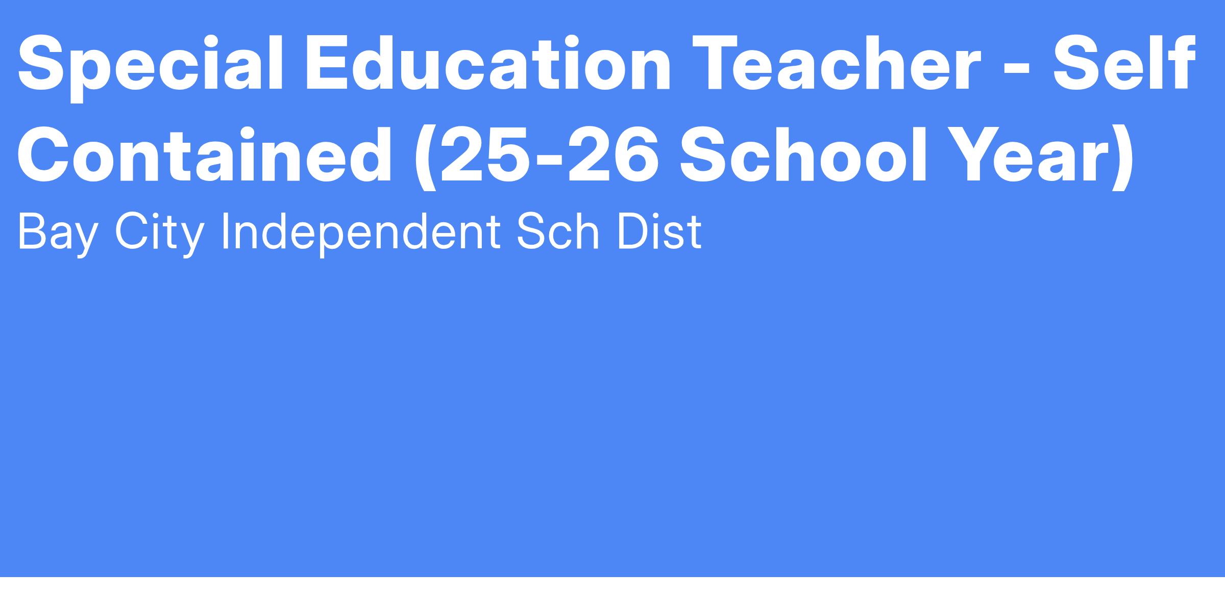 Job Title: Special Education Teacher - Self Contained