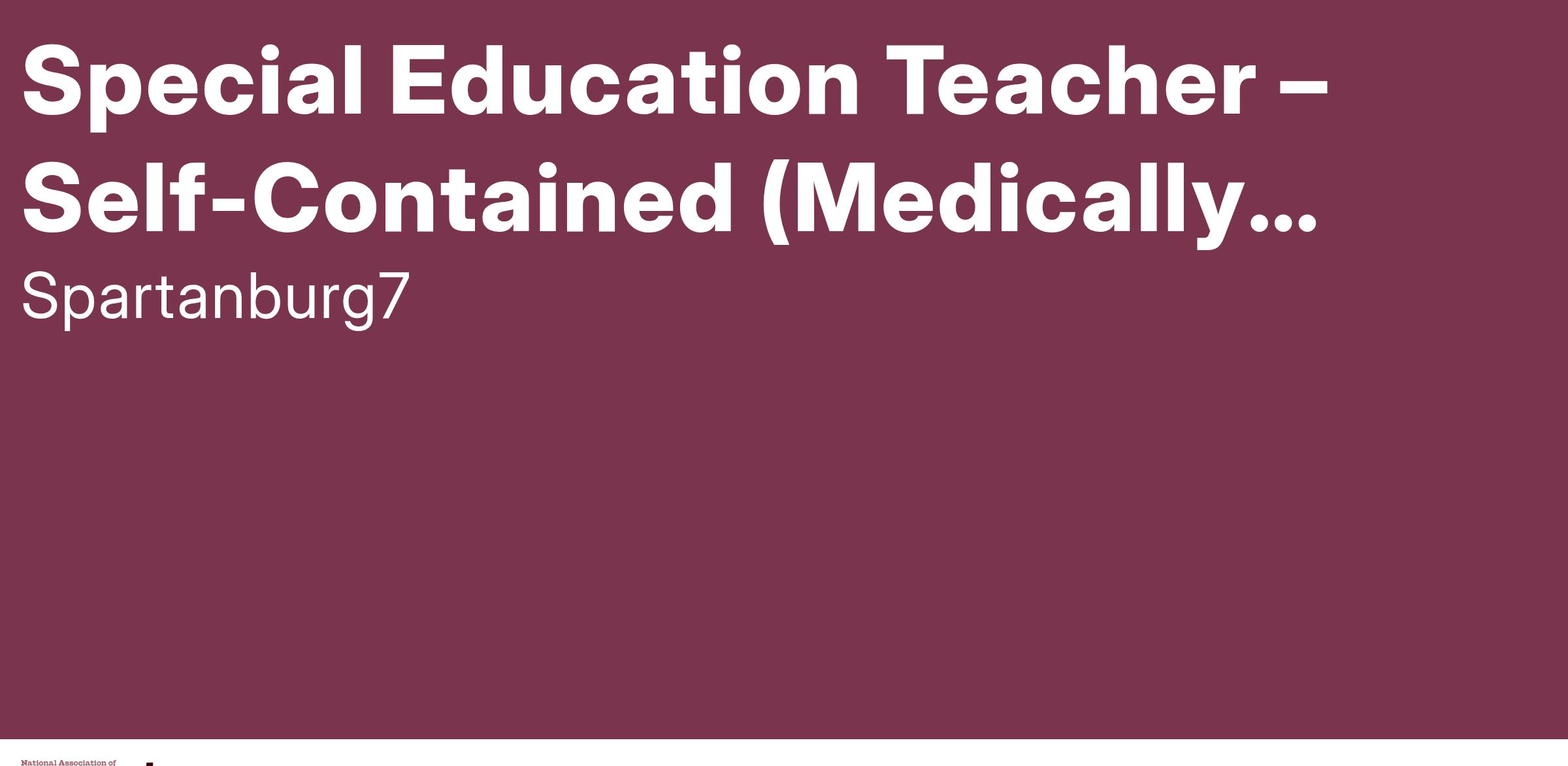 Position Title: Special Education Teacher – Self-Contained Classroom (Medically Fragile/Severe Needs)