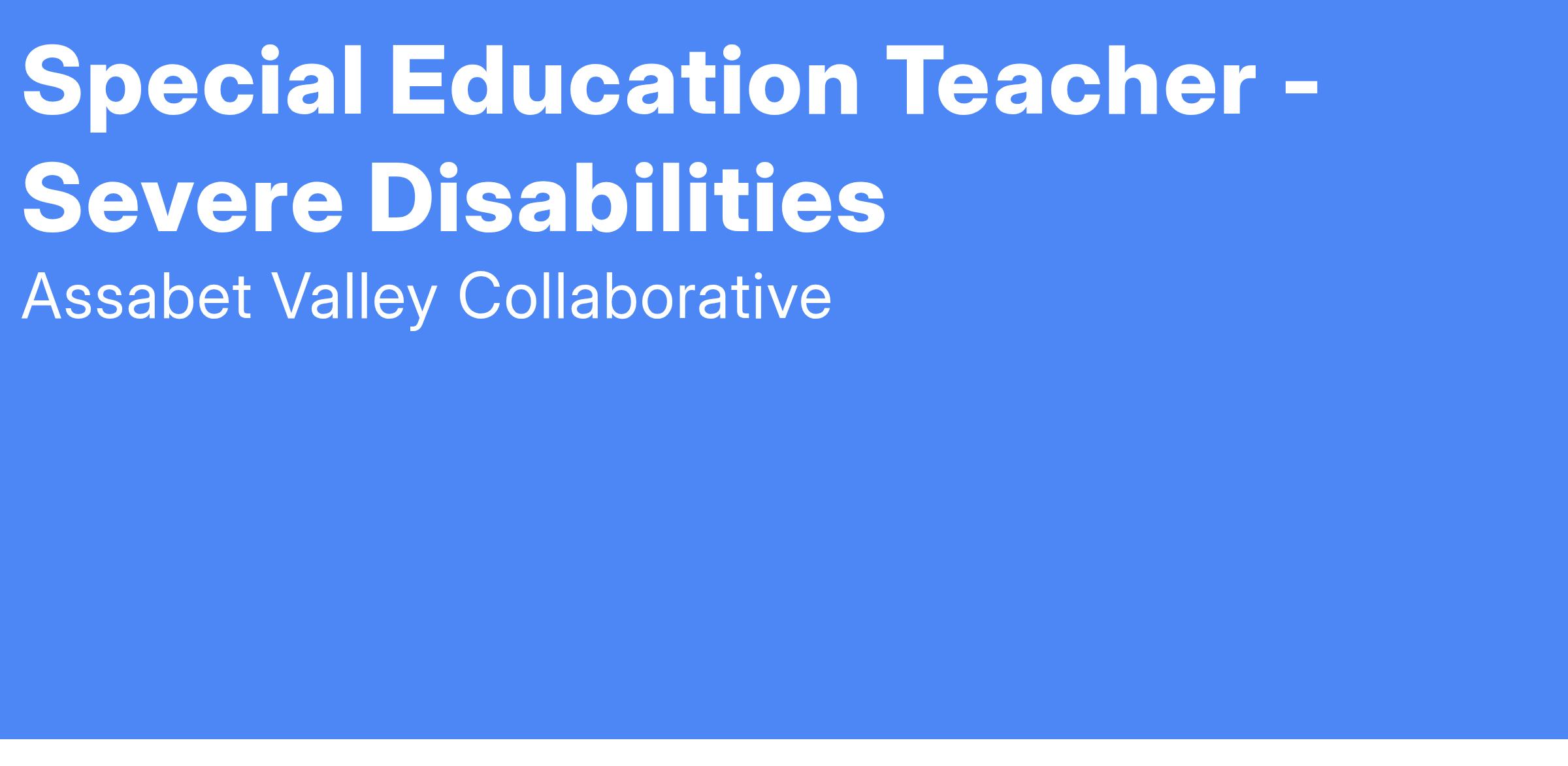 - Licensed or working toward licensure from MA DESE in Moderate or Severe (preferred) Disabilities.