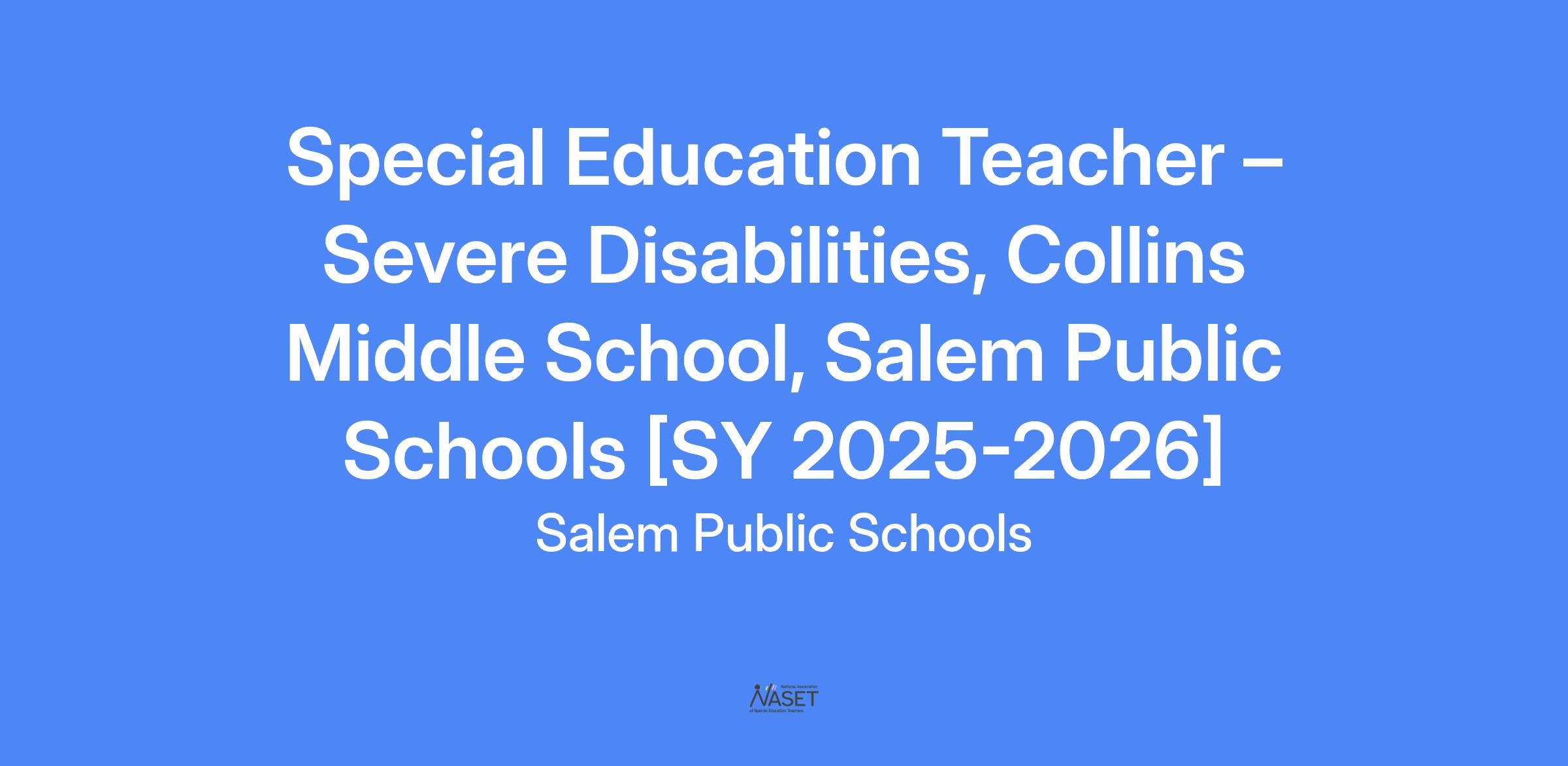 Special Education Teacher – Severe Disabilities, Collins Middle School, Salem Public Schools [SY 2025-2026]