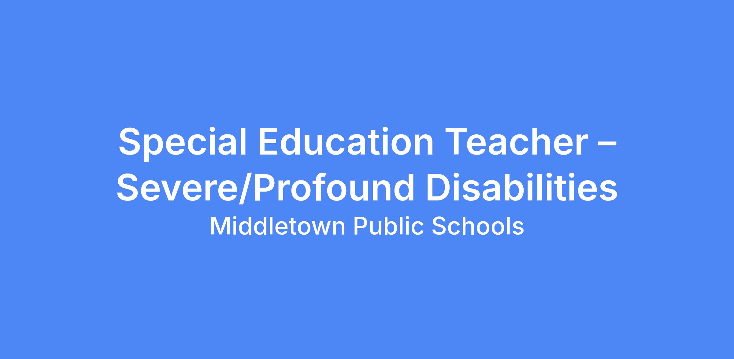 The job of "Special Education Teacher – Severe/Profound Disabilities" is done for the purpose(s) of facilitating Special Education student success in the least restrictive environment in the areas of academics, behavior regulation, interpersonal/social skills, self-management, and activities of daily living through implementing district approved curriculum; documenting teaching and student progress/activities, outcomes; addressing specific needs of students; providing a safe and optimal learning environment and providing feedback to students, parents and administration regarding student progress, expectations, goals, and to ensure access to general education curriculum and non-disabled peers to the greatest extent possible.