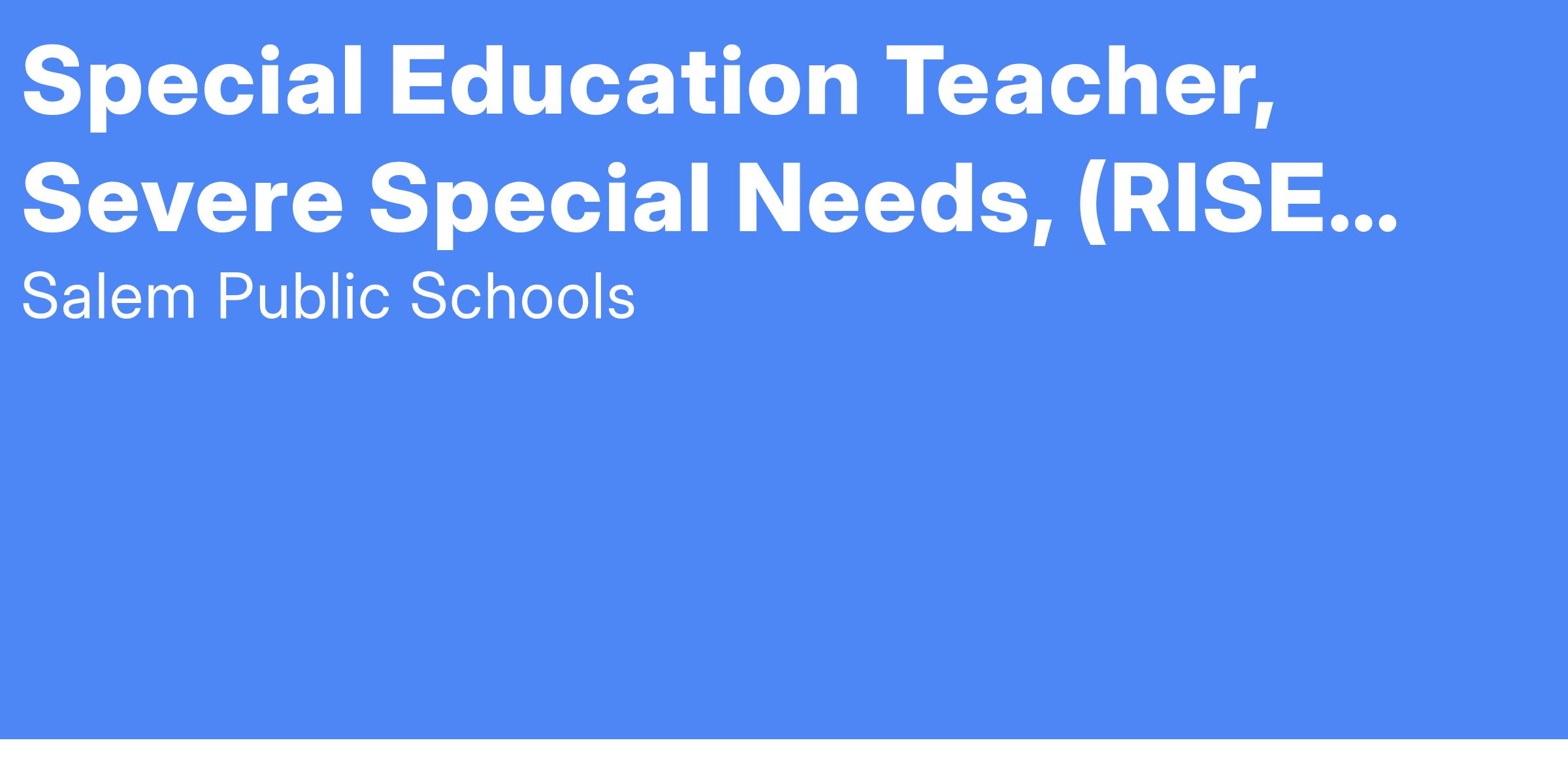 ANTICIPATED Special Education Teacher, Severe Special Needs, (RISE Program), Salem High School, Salem Public Schools, Salem, MA [SY 2025-2026]