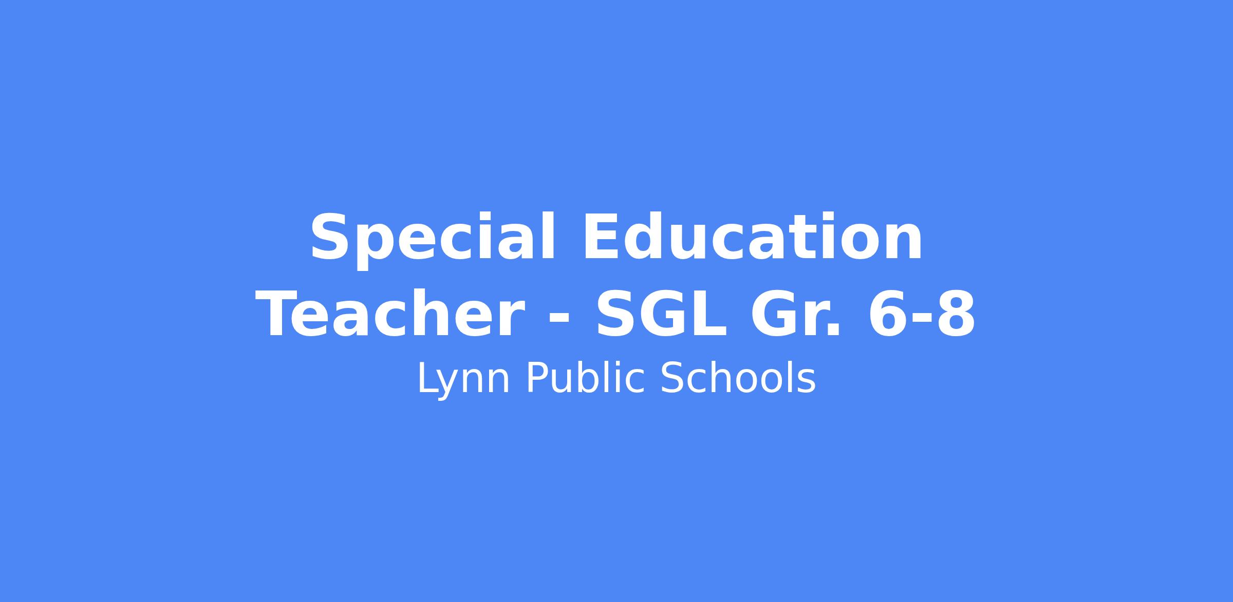 Special Education Teacher - SGL Gr. 6-8