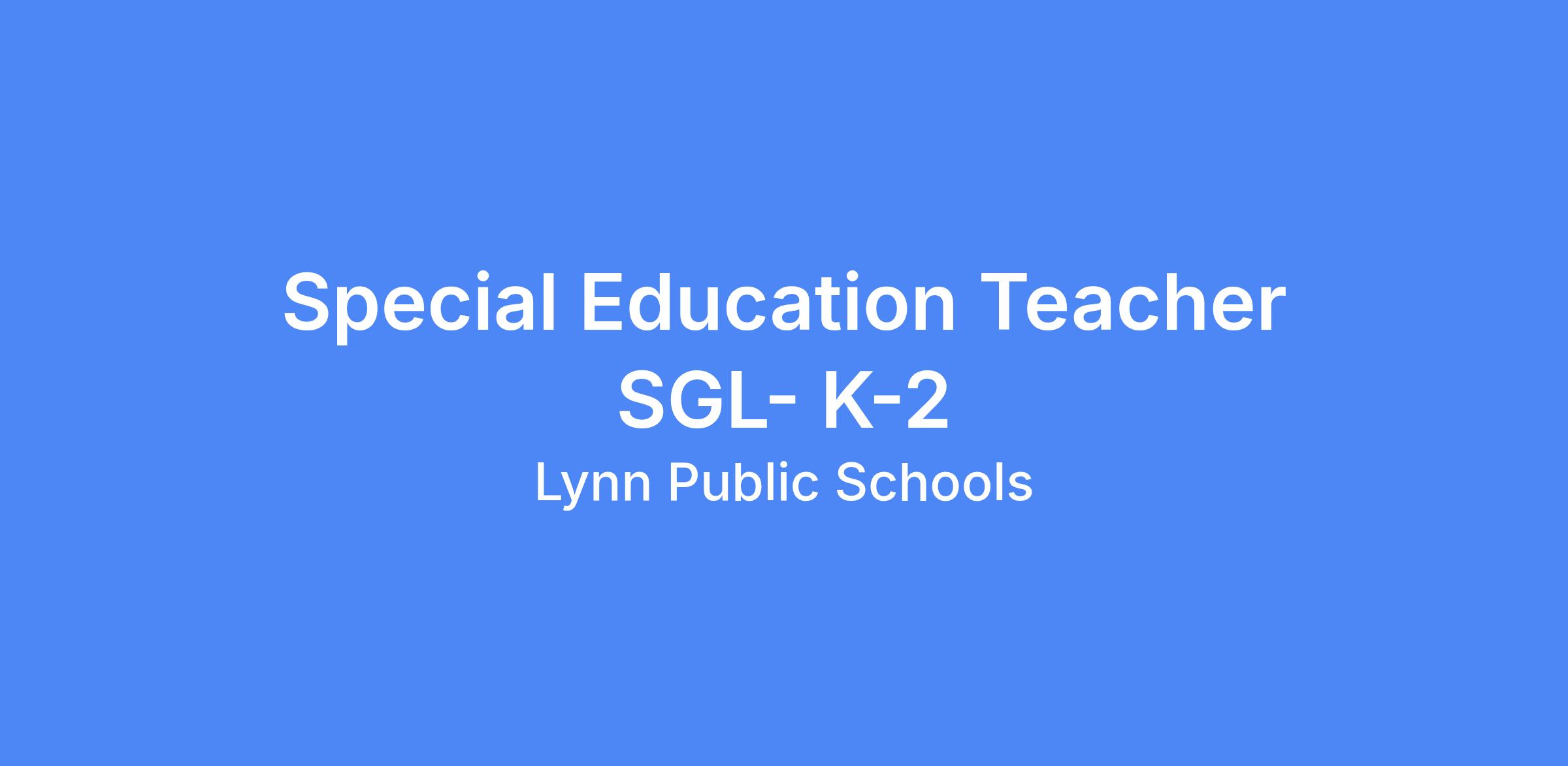 Special Education Teacher SGL- K-2