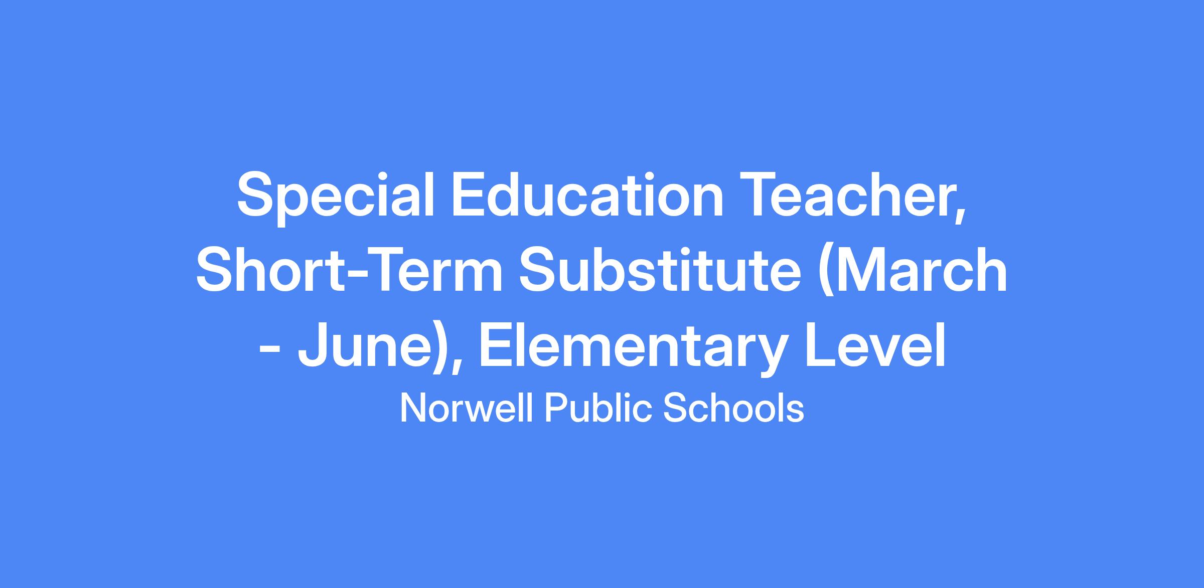 POSITION:Special Education Teacher, Short-Term Substitute (March – June), Elementary Level