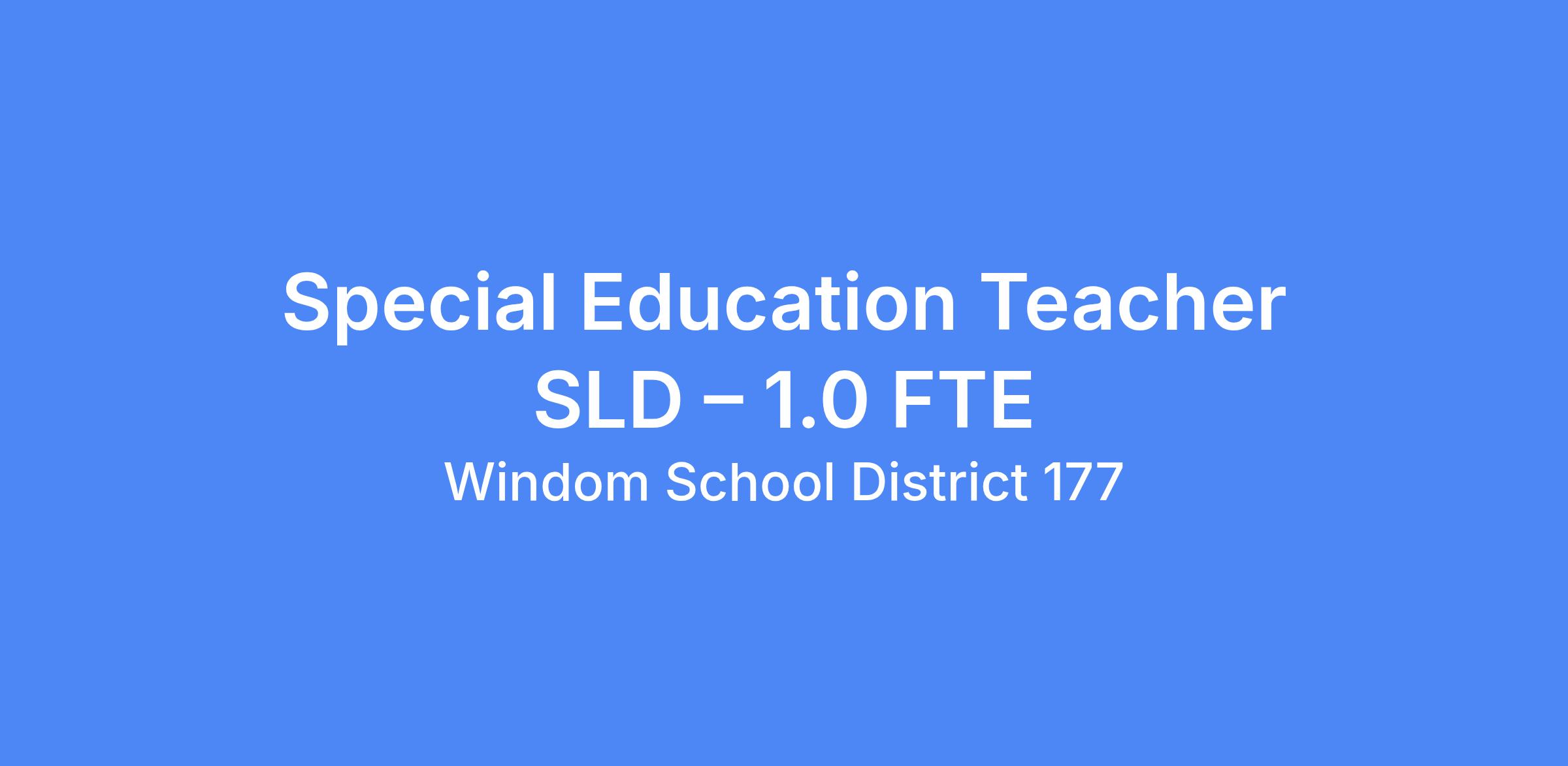 Special Education Teacher SLD � 1.0 FTE