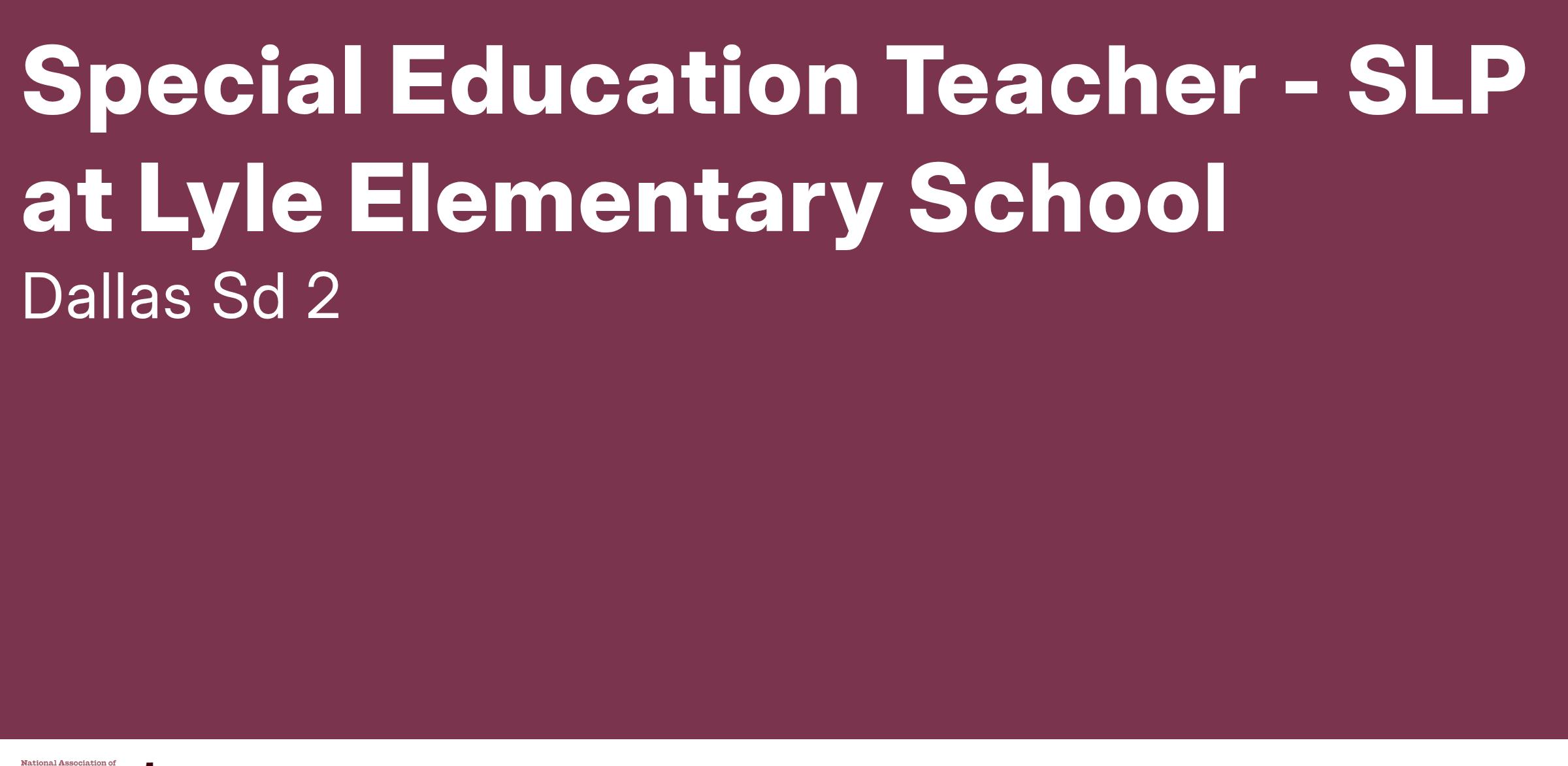 Dallas School District is accepting applications for full-time Special Education Teacher in the SLP at Lyle Elementary School.