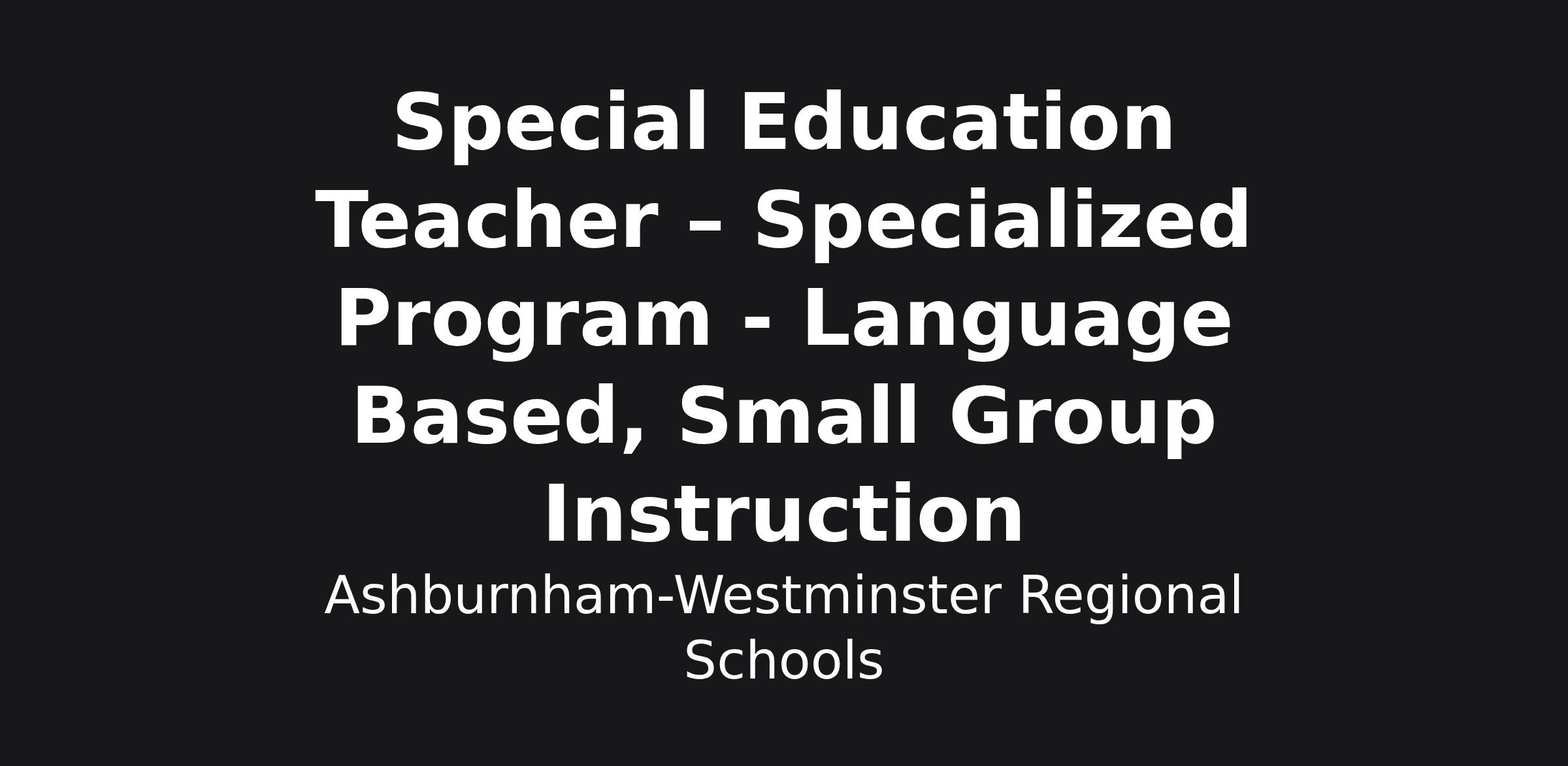 The Ashburnham Westminster Regional School District is seeking a collaborative and student-centered Special Education Teacher to support students with learning disabilities (reading, writing, math) and/or social-emotional needs. This position includes both small-group specialized instruction and inclusive support within general education classrooms.