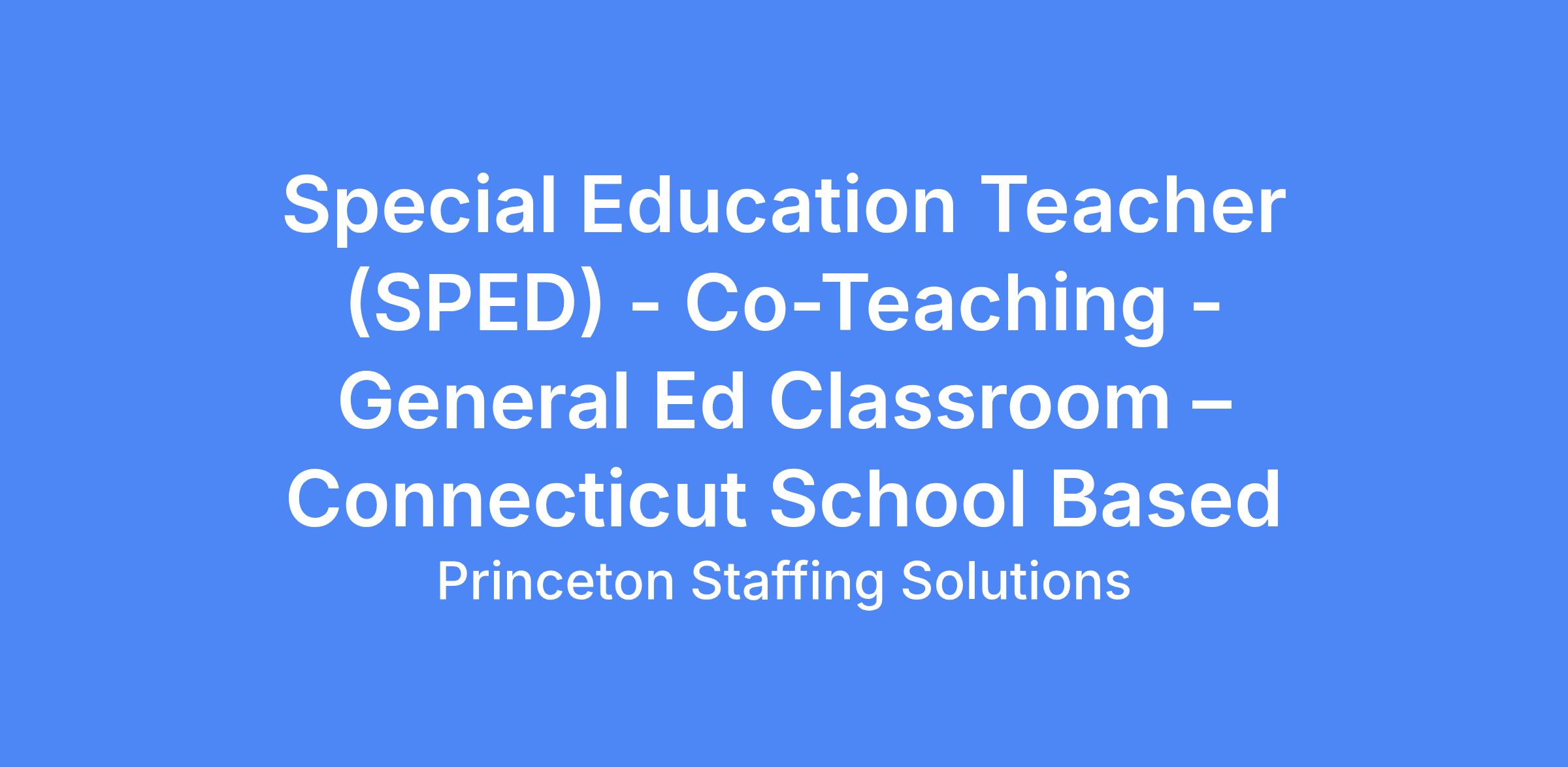 Experience Required: Must have minimum 1 year paid teaching experience in a Co-Teaching Classroom Environment Collaborating with a General Classroom Teacher supporting diverse learning needs in an inclusive setting with active Special education (165) Connecticut teaching certificate in good standing at time of application
