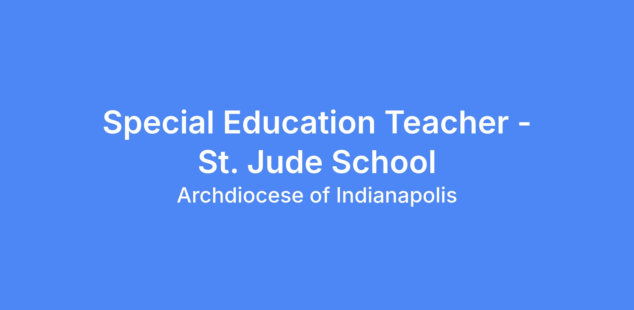 St. Jude School is seeking to add a compassionate and skilled Special Education teacher for the 2026-2027 school year. St. Jude School has a long tradition rooted in the Catholic faith. Serving Pre-Kindergarten through 8th grade, we continue to be blessed with wonderful school families and community members, faithful and caring staff dedicated to answering the call to teach, and incredible school facilities that continue to improve and grow. St. Jude School strives to provide new experiences and opportunities for our students and families to grow in many ways including faith, academics, leadership, and athletics.
