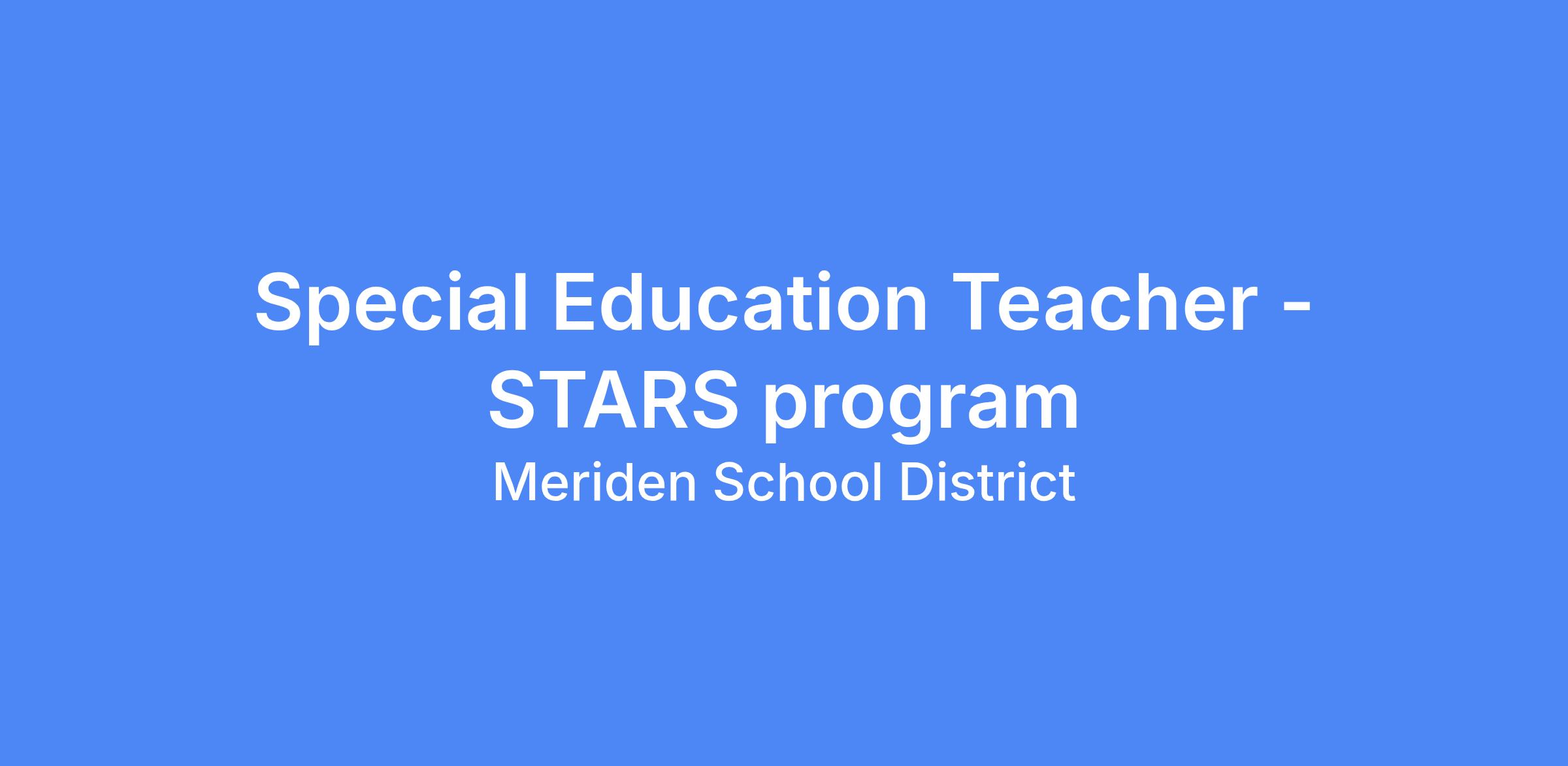 Description: The Meriden Public Schools seeks a full-time special education teacher for the 2025-2026 school year for John Barry Elementary School in the STARS program. The special education teacher will work with students with special needs, including those with autism and communication needs. Responsibilities of the special education teacher also include conducting individual assessments, writing IEP’s, participating in PPT’s, timely reporting of student progress, assisting in development of FBA’s & BIP’s, training and supervision of paraprofessionals, maintaining positive communication with parents, developing student schedules, assisting with toileting, feeding, and lifting as required and other related duties assigned by the supervisor or principal. In this role, the special educator will collaborate with external agencies that support students with disabilities as they develop 21st-century skills and prepare for independent living after high school.
