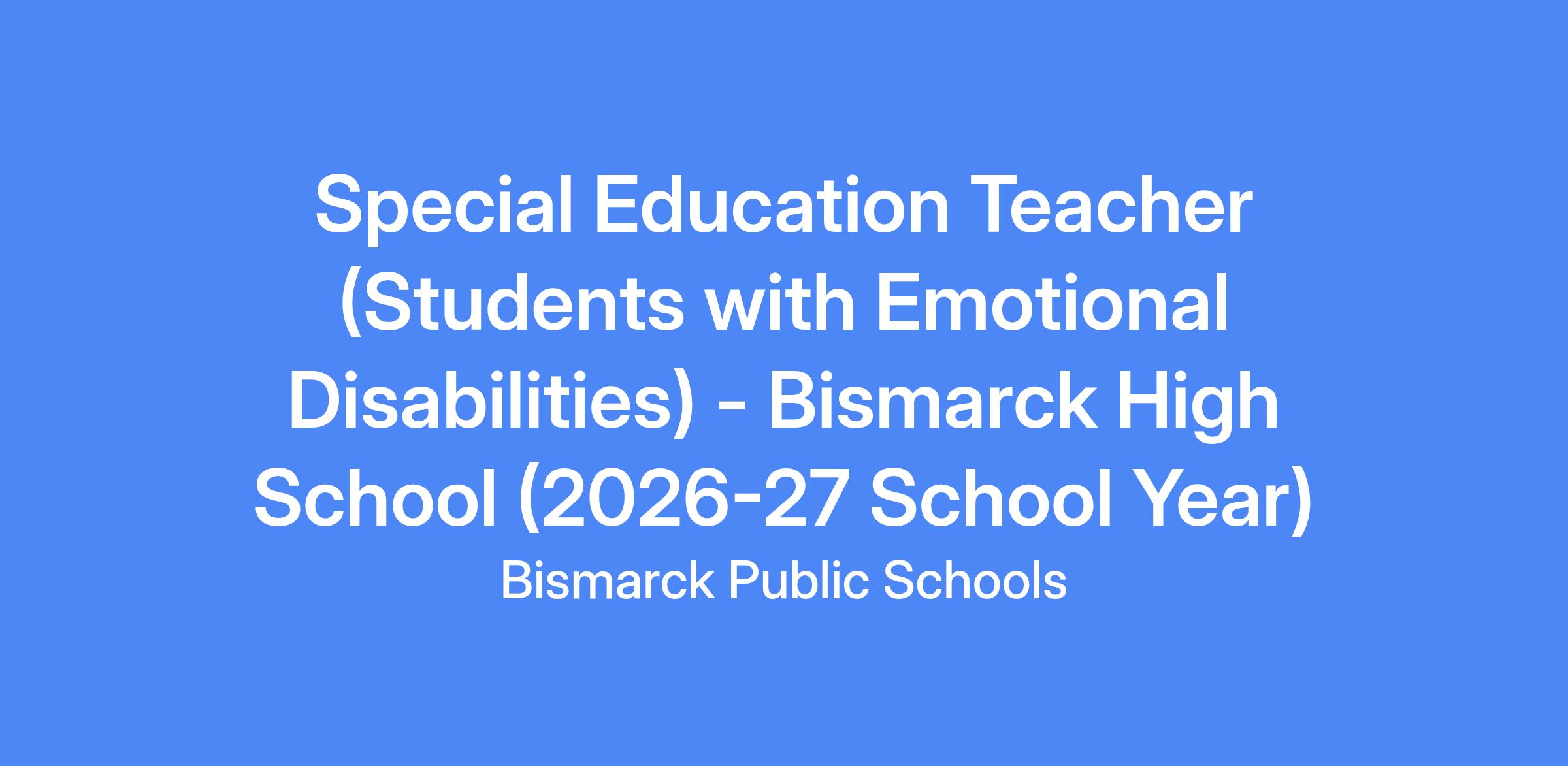 Bismarck Public Schools is accepting applications for a Special Education Teacher at Bismarck High School for the 2026-27 School Year.