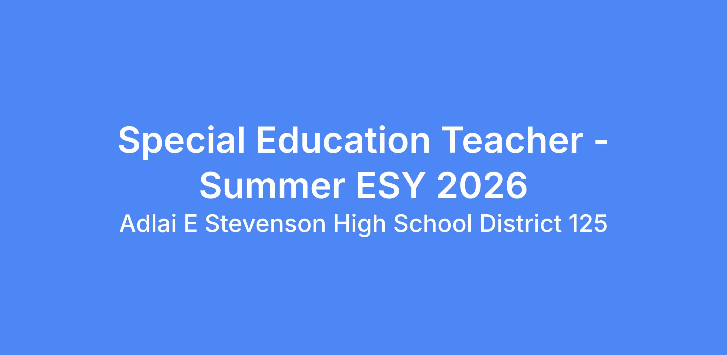 Adlai E. Stevenson High School (Lincolnshire, IL) is seeking two Special Education Teachers for the 2026 ESY Summer session.