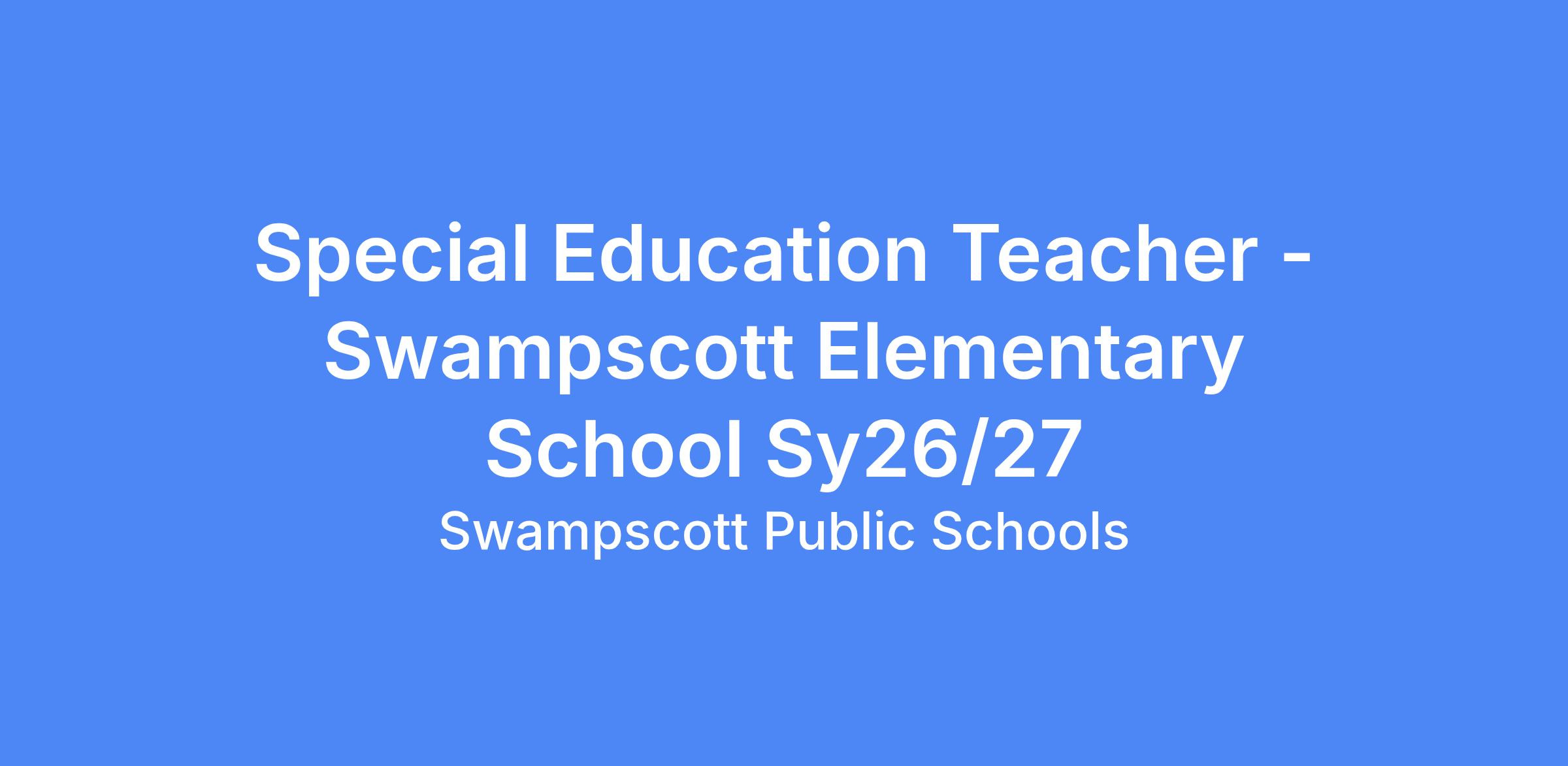 Special Education Teacher - Swampscott Elementary School Sy26/27