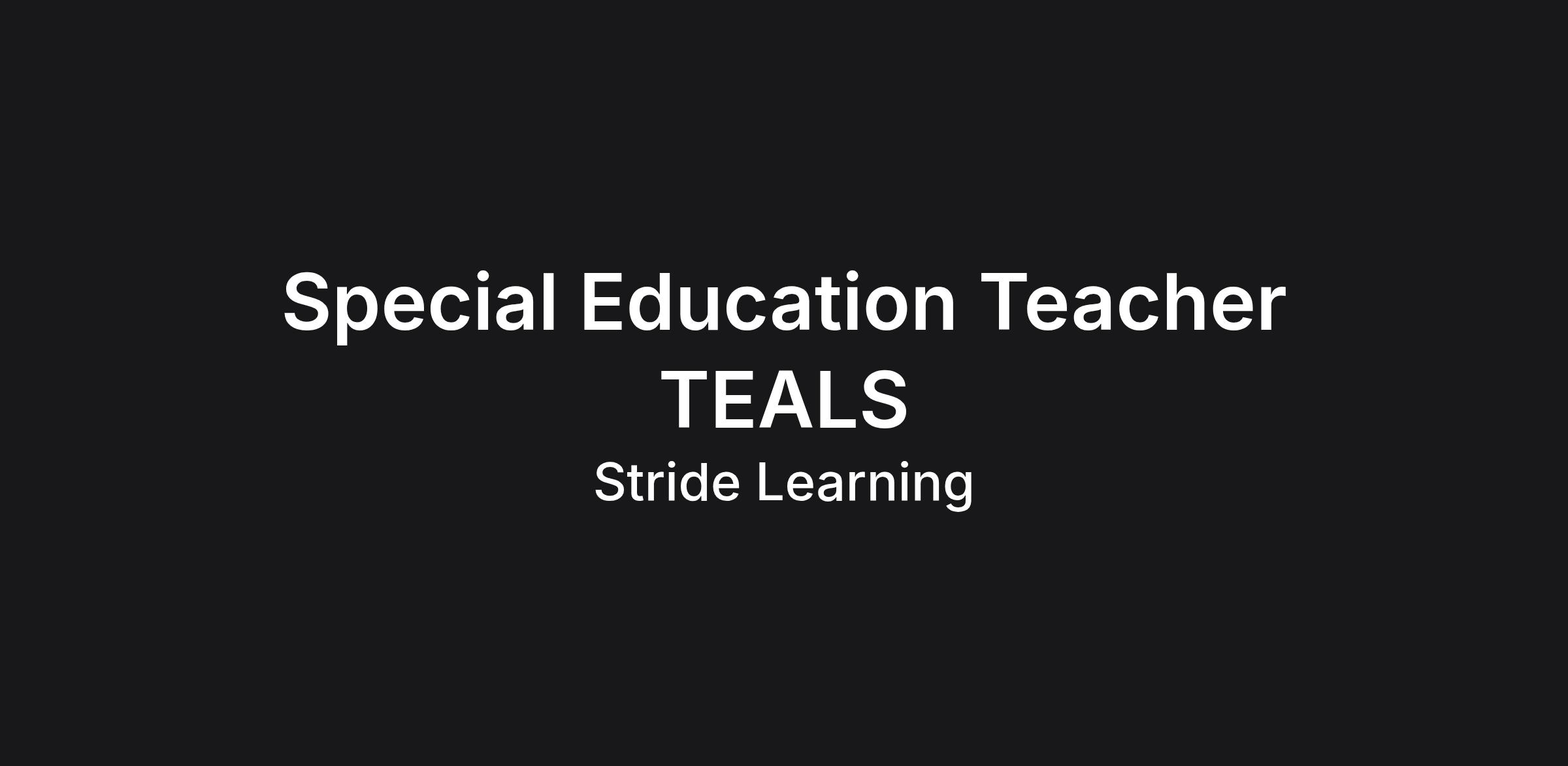 Special Education Teacher- TEALS provides instruction, support and guidance, manages the learning process, and focuses on self-contained and ALT students’ individual needs as defined by each student’s IEP. Also responsible for compliance documents required in serving self contained and ALT students.