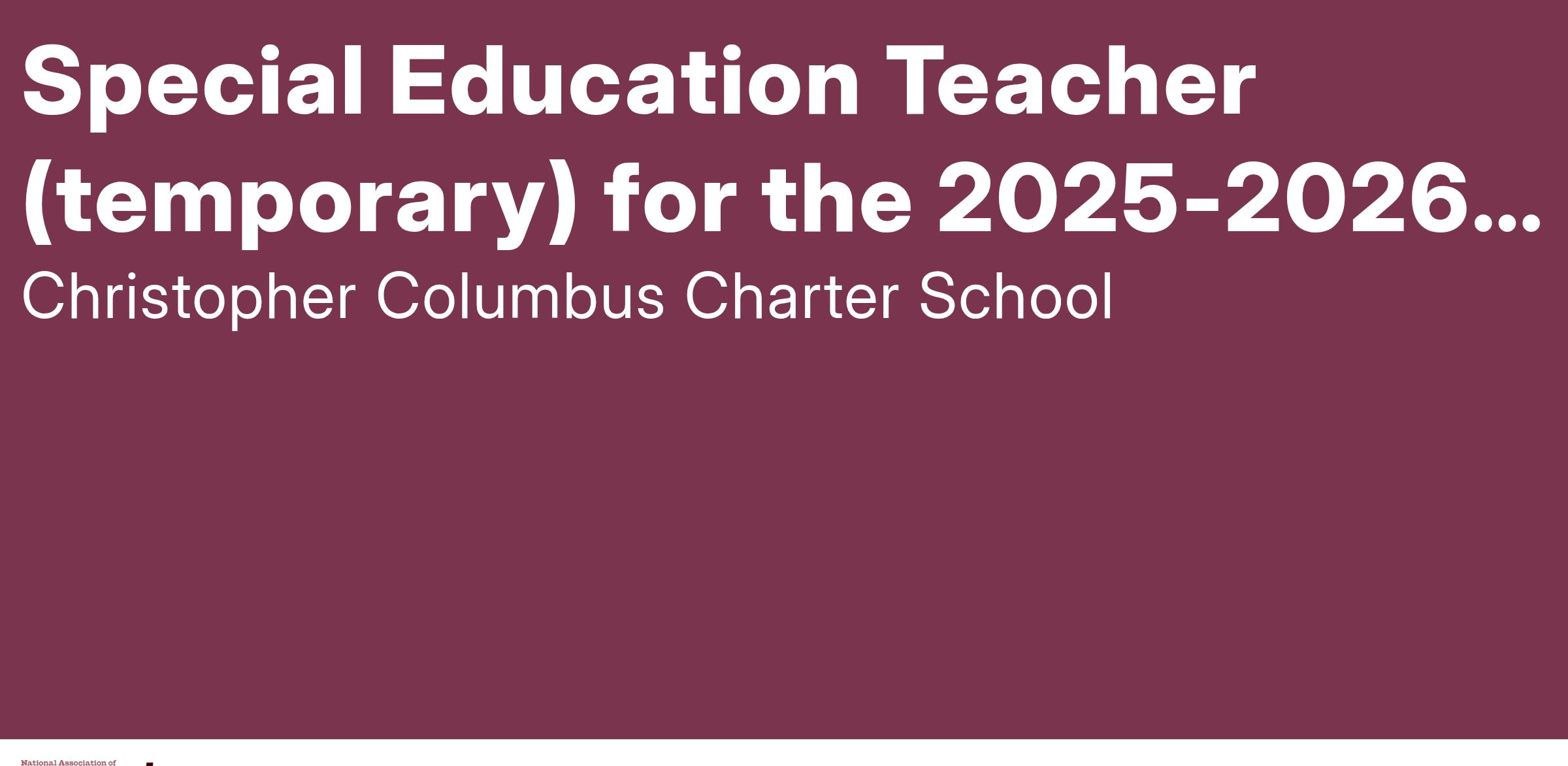 Christopher Columbus Charter School is an AA/EOE committed to the development of an inclusive, multicultural community. All qualified applicants will receive consideration for employment without regard to race, color, religion, disability, ancestry, national origin, age or sex.