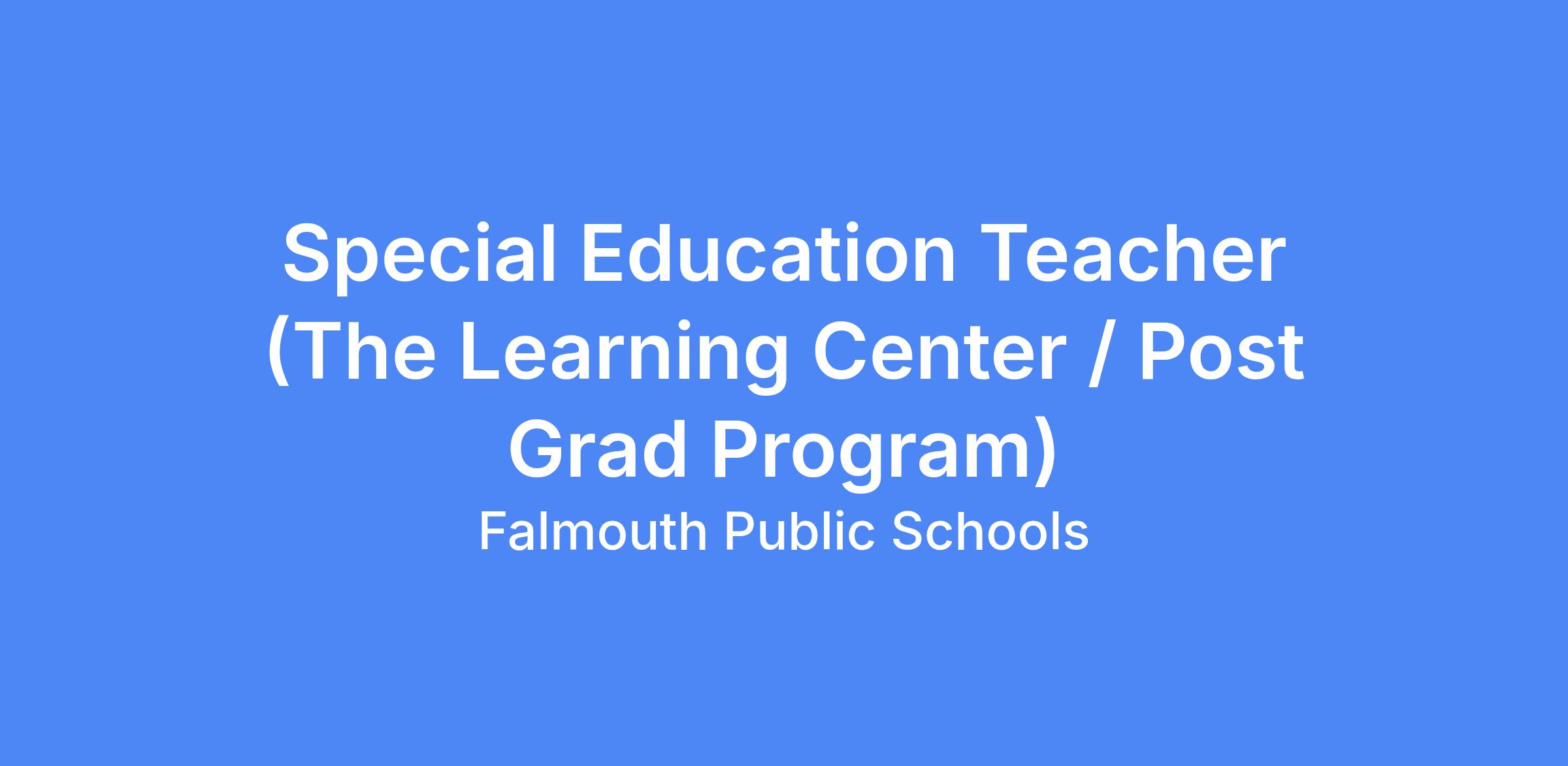 Special Education Teacher (The Learning Center / Post Grad Program)