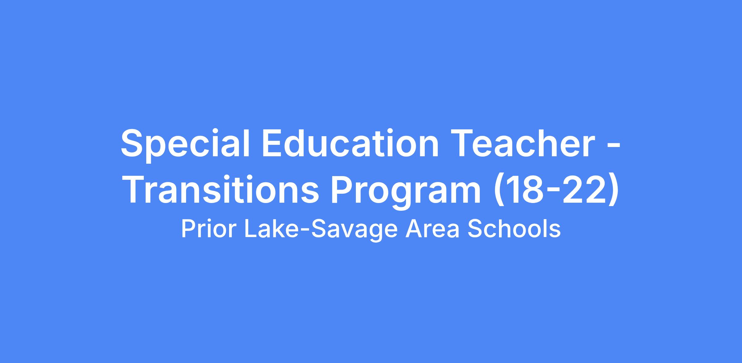 Special Education Teacher - Transition Program (18-22) - 1.0 FTE