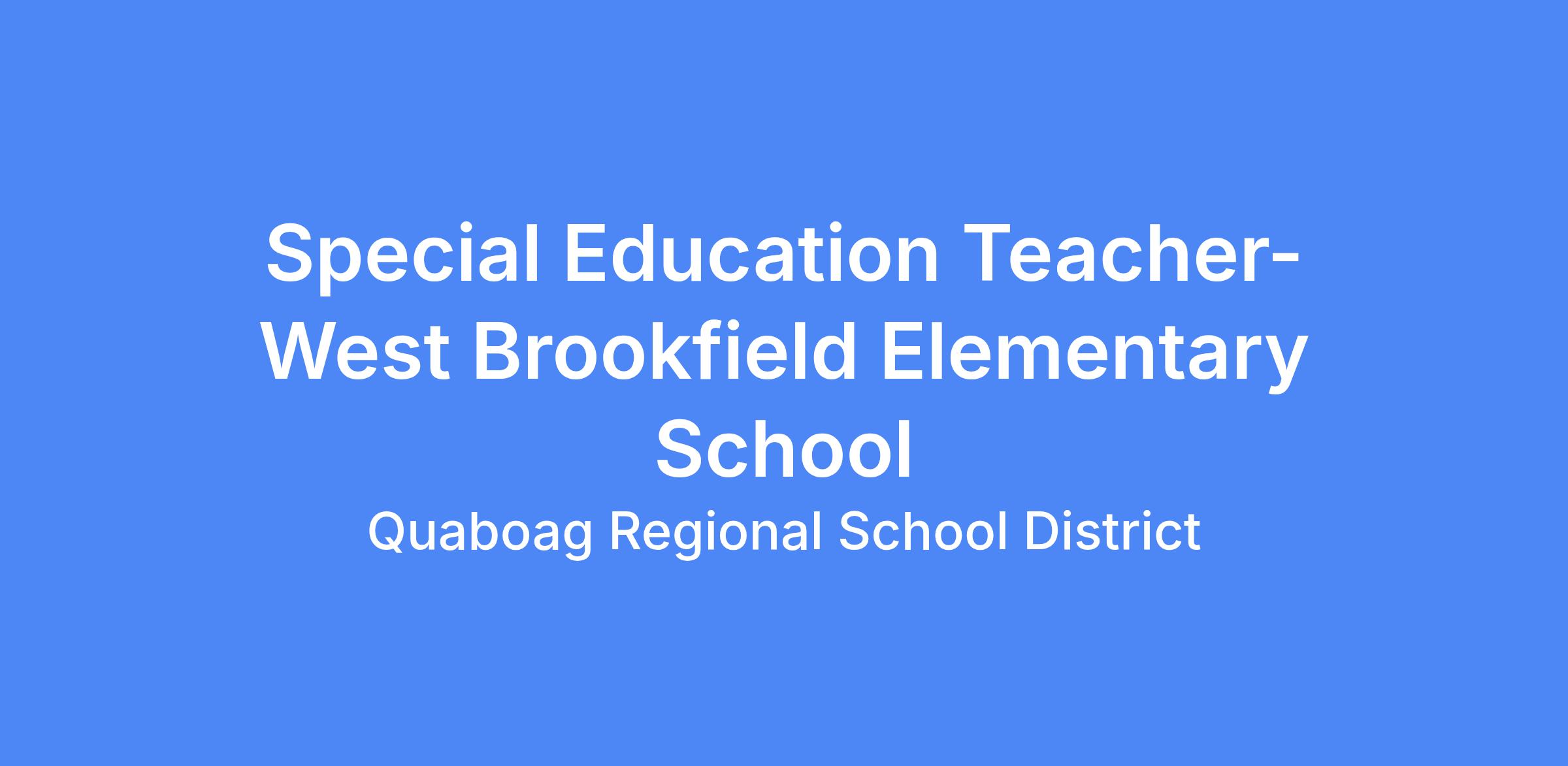 West Brookfield Elementary School is seeking a dynamic and highly organized candidate to serve as the Special Education Teacher