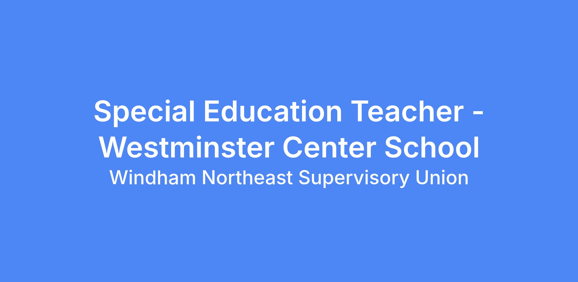 WNESU is seeking a special education teacher to join our team at Westminster Center School for the 26-27 SY to provide case management duties and direct instruction to elementary school students with an IEP.