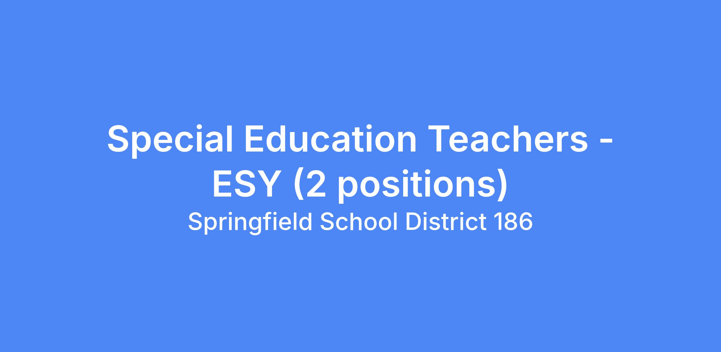 TITLE OF VACANCY: Special Education Teachers (2)