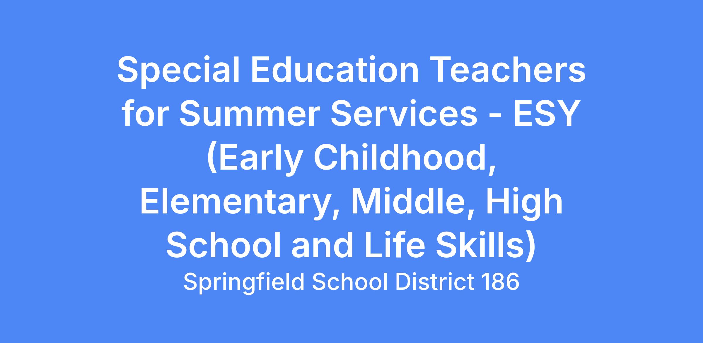 TITLE OF VACANCY: Special Education Teachers for Summer Services*