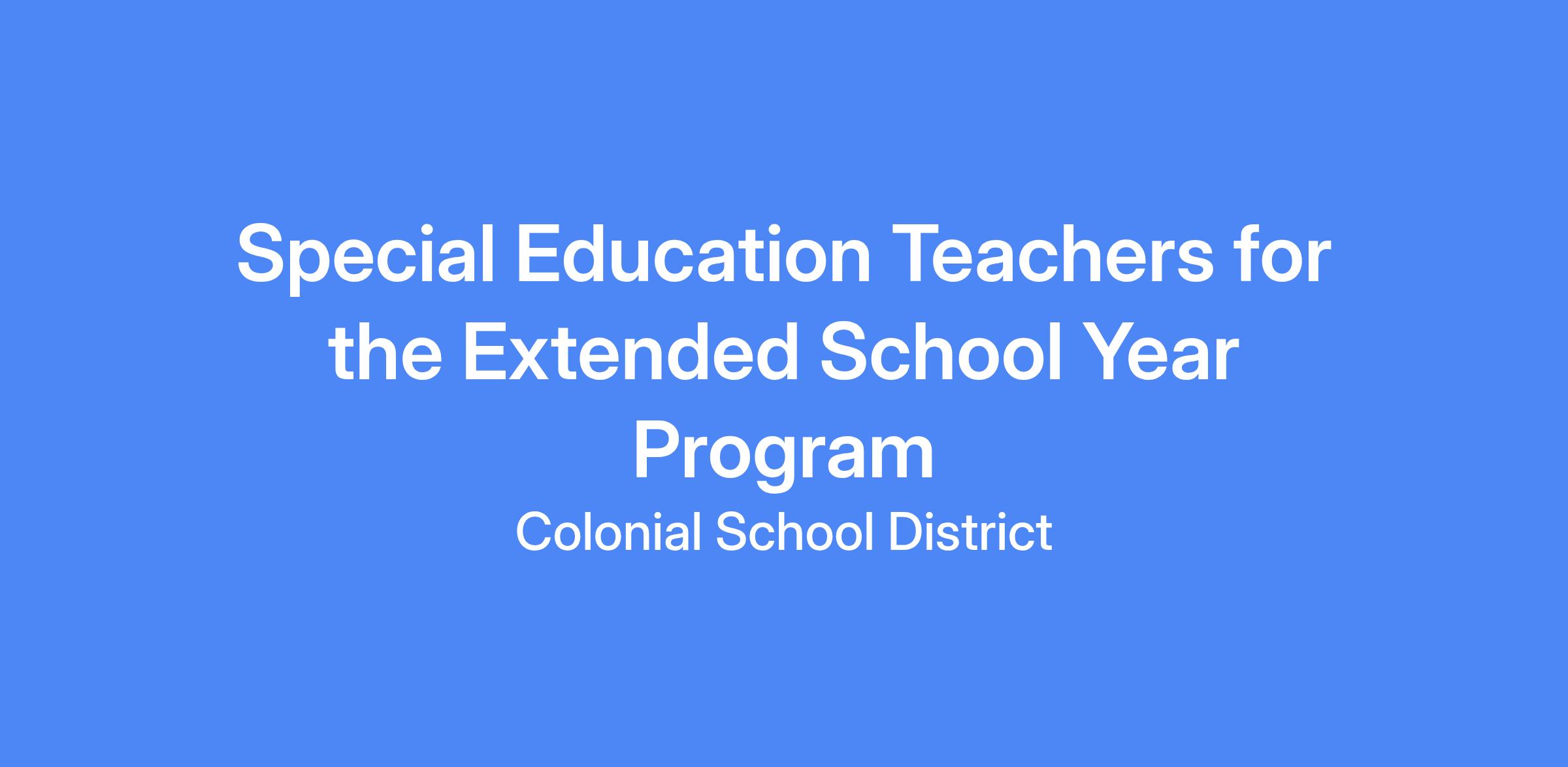 Special Education Teachers for the Extended School Year Program