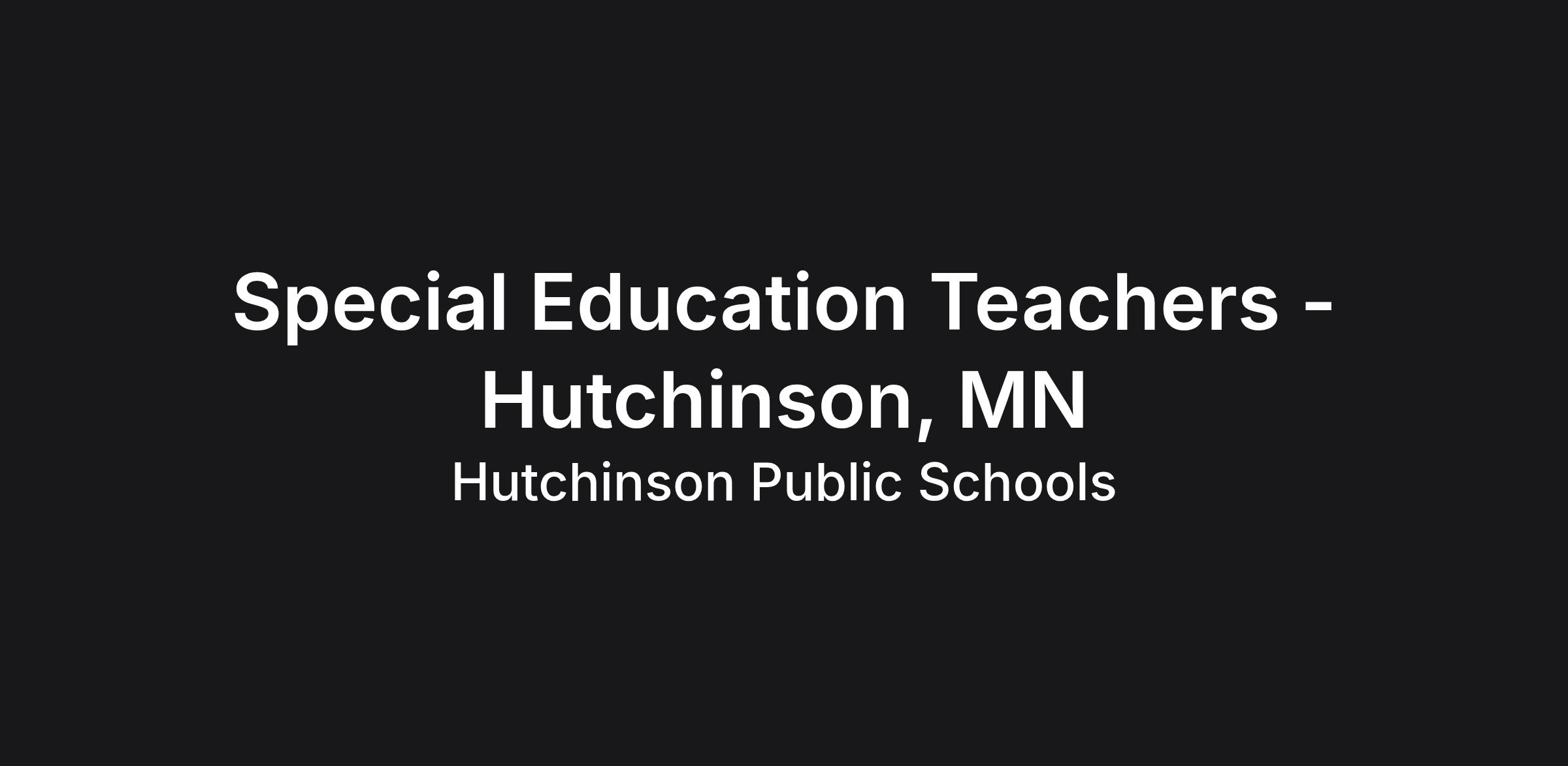 Hutchinson Public Schools is seeking two Special Education Teachers at our West Elementary/Tiger Elementary buildings for the 2026-2027 school year and beyond.