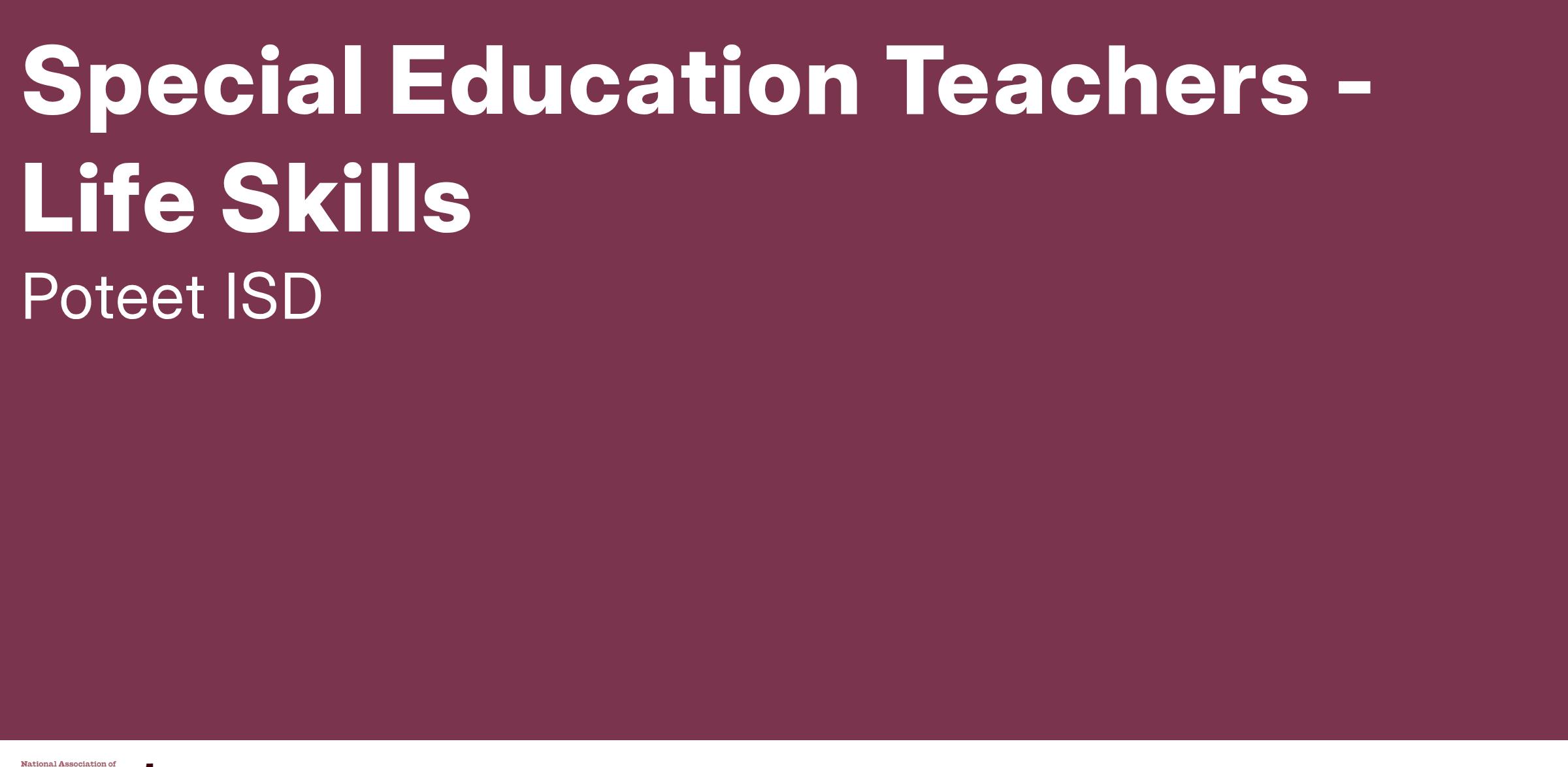 Poteet ISD is accepting application for Special Education Life Skills Teachers for the 2025-2026 school year.