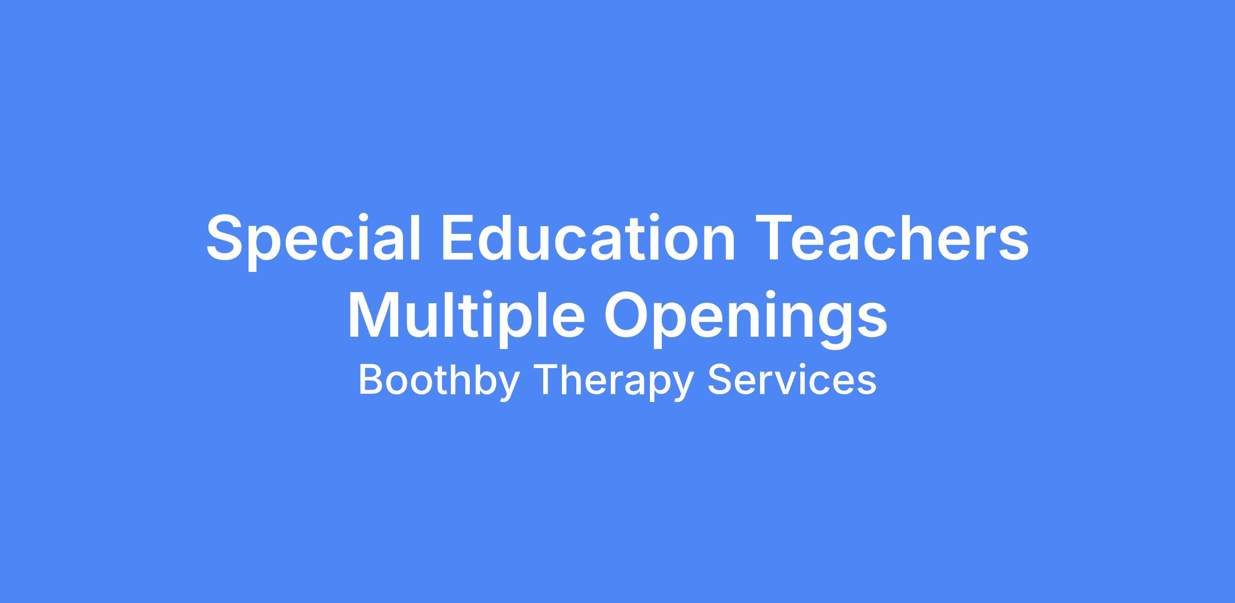Boothby Therapy Services is hiring multiple Special Education Teachers to support students across a variety of grade levels and educational settings in New Hampshire. These openings are available due to program growth and expanding partnerships with school districts.