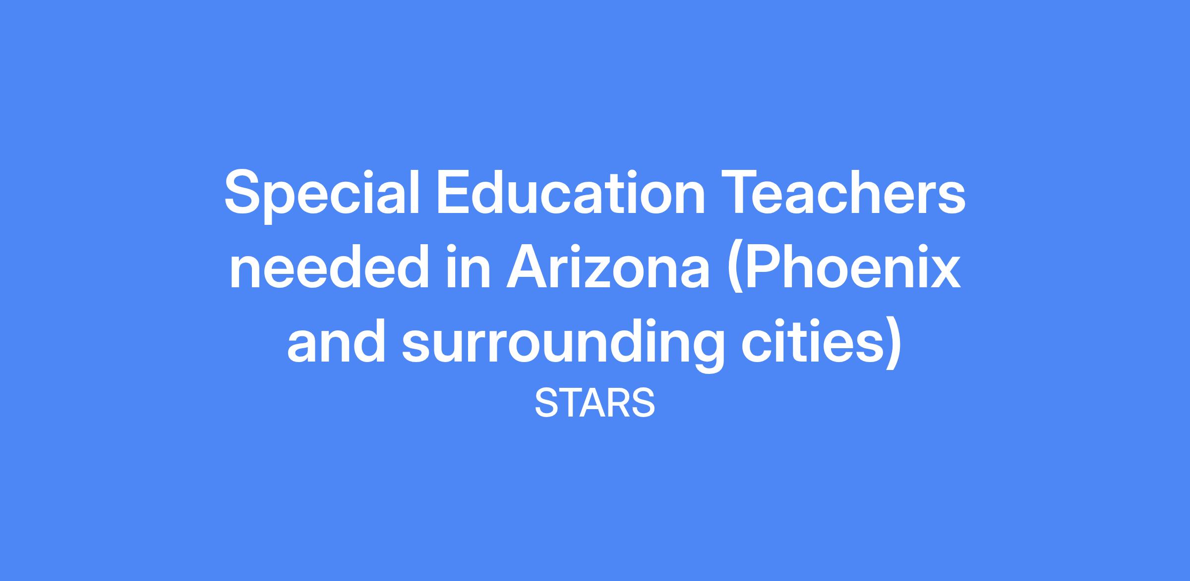 2026-2027: Special Education Teachers needed in Arizona (Phoenix and surrounding cities).
