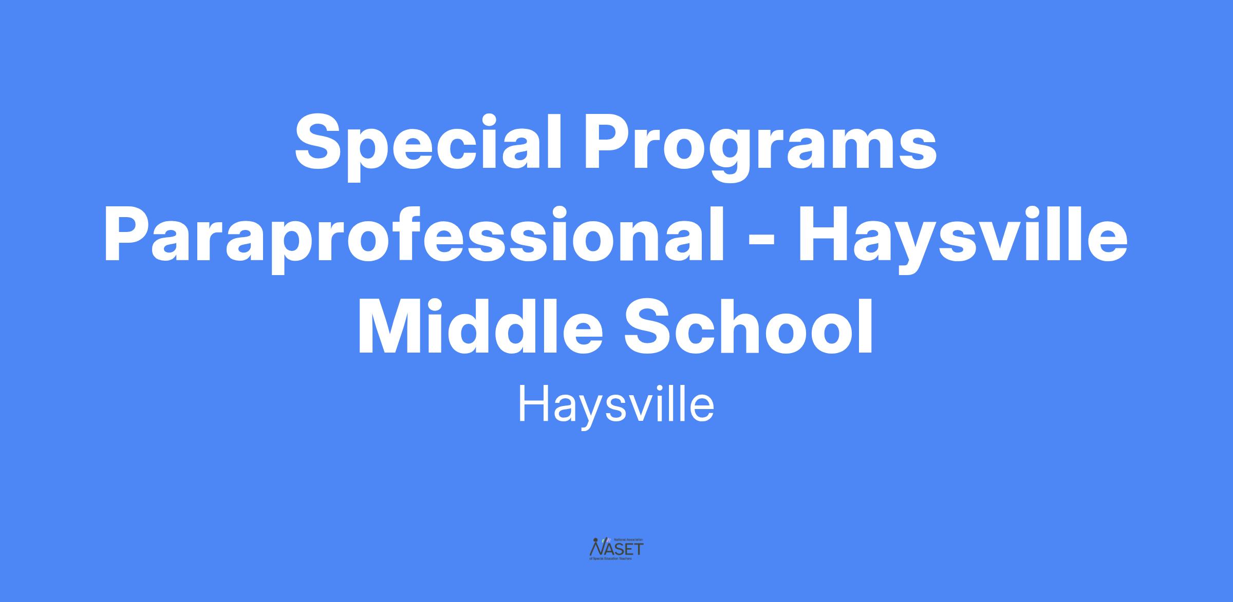 JOB TITLE: SPECIAL PROGRAMS PARAPROFESSIONAL