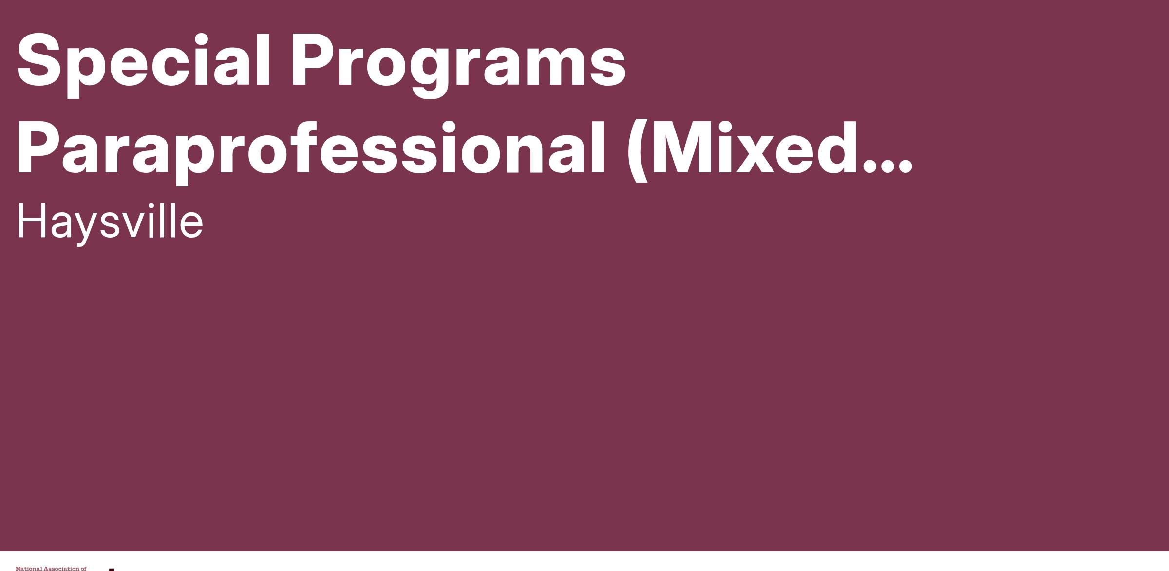 JOB TITLE: SPECIAL PROGRAMS PARAPROFESSIONAL