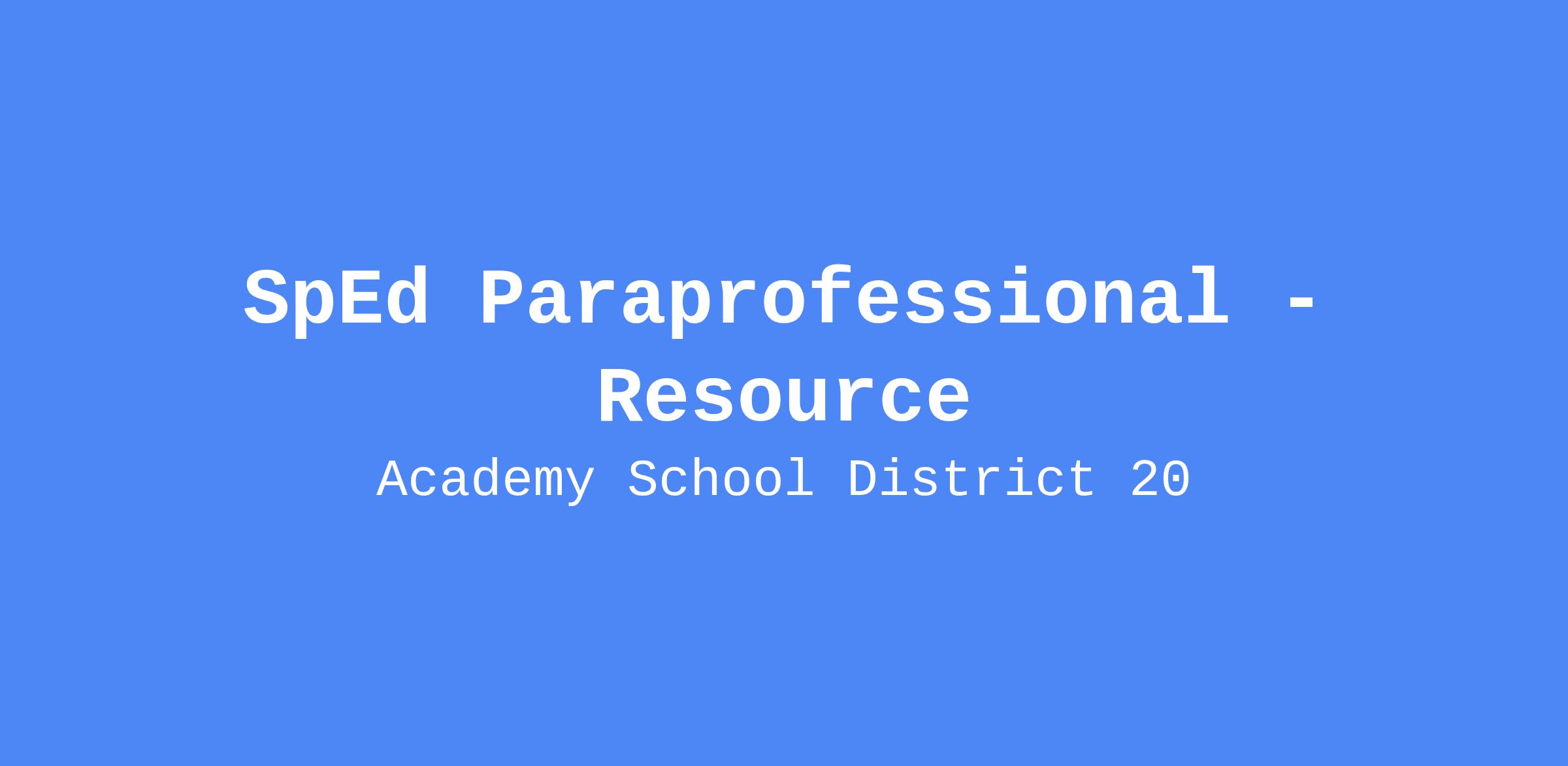 01/20/2026SpEd Paraprofessional - Resource performs the day-to-day activities of teaching special education students while under the supervision of a teacher. The teaching assistant does not make diagnostic or long-term education decisions regarding special education students. This includes individuals who may or may not be licensed.The following statements are illustrative of the essential functions of the job and other key duties that may be required. The description may not include all functions performed by the incumbents in various locations. The district reserves the right to modify or change the duties or the essential functions of this job at any time.