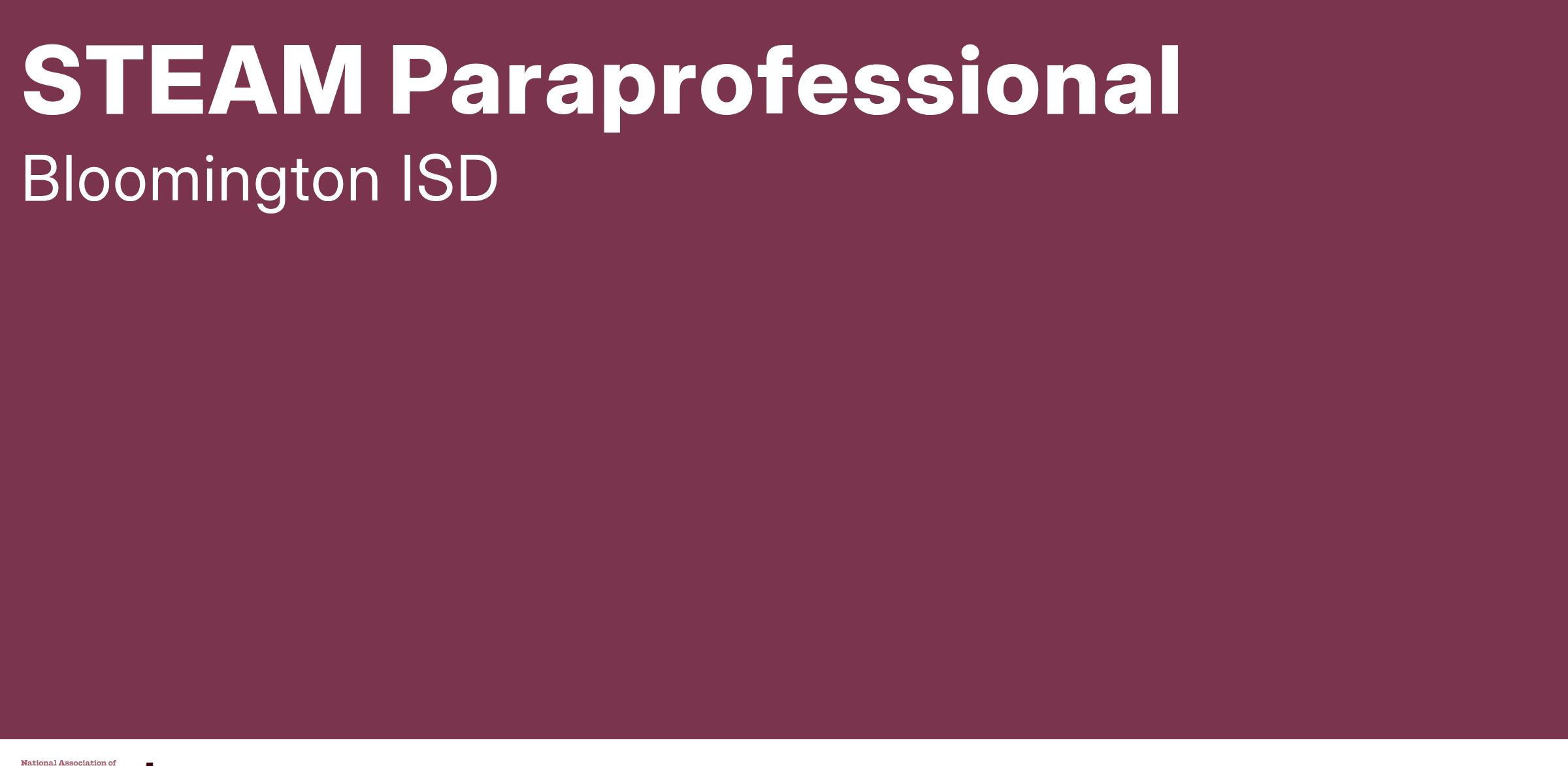 Job Title: STEAM Paraprofessional (PK–2nd Grade)