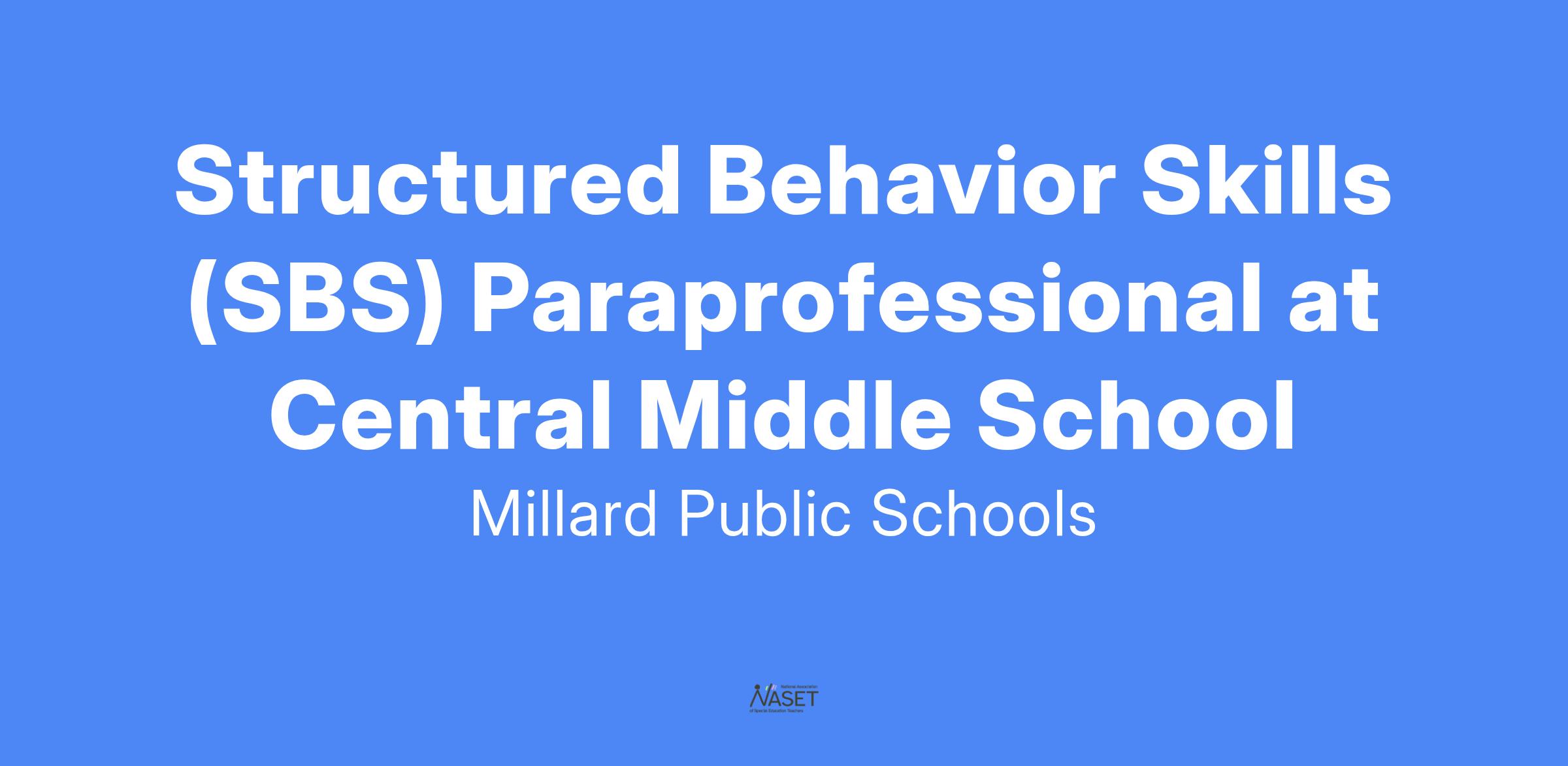 Millard Central Middle school is seeking a positive and team-oriented individual to serve as a Structured Behavior Skills (SBS) Paraprofessional. The paraprofessional will work with students on both academic and behavior/social skills in a small setting. The paraprofessional will assist the teacher in small group lessons, classroom support, and in creating the structure of the classroom environment. Hours are approximately 8:00 a.m. – 3:00 p.m. Come be a part of our Cyclone family!
