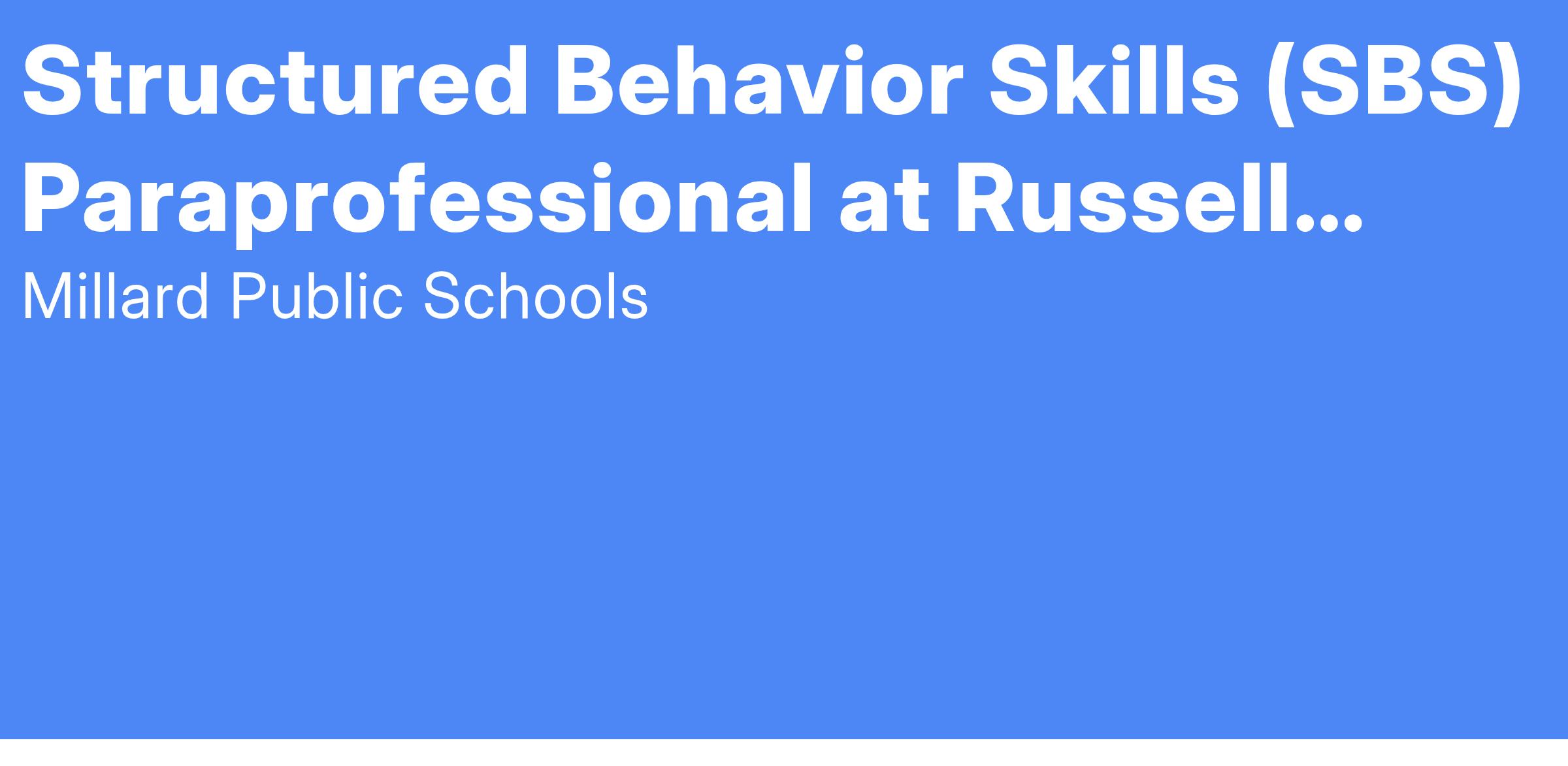 Russll Middle school is seeking a positive and team-oriented individual to serve as a Structured Behavior Skills (SBS) paraprofessional starting in August 2025. The paraprofessional will work with students on both academic and behavior/social skills in both a small group setting and in academic classes. The paraprofessional will assist the teacher in small group lessons, classroom support, and in creating the structure of the classroom environment. Hours are approximately 8:00 a.m. – 3:00 p.m.